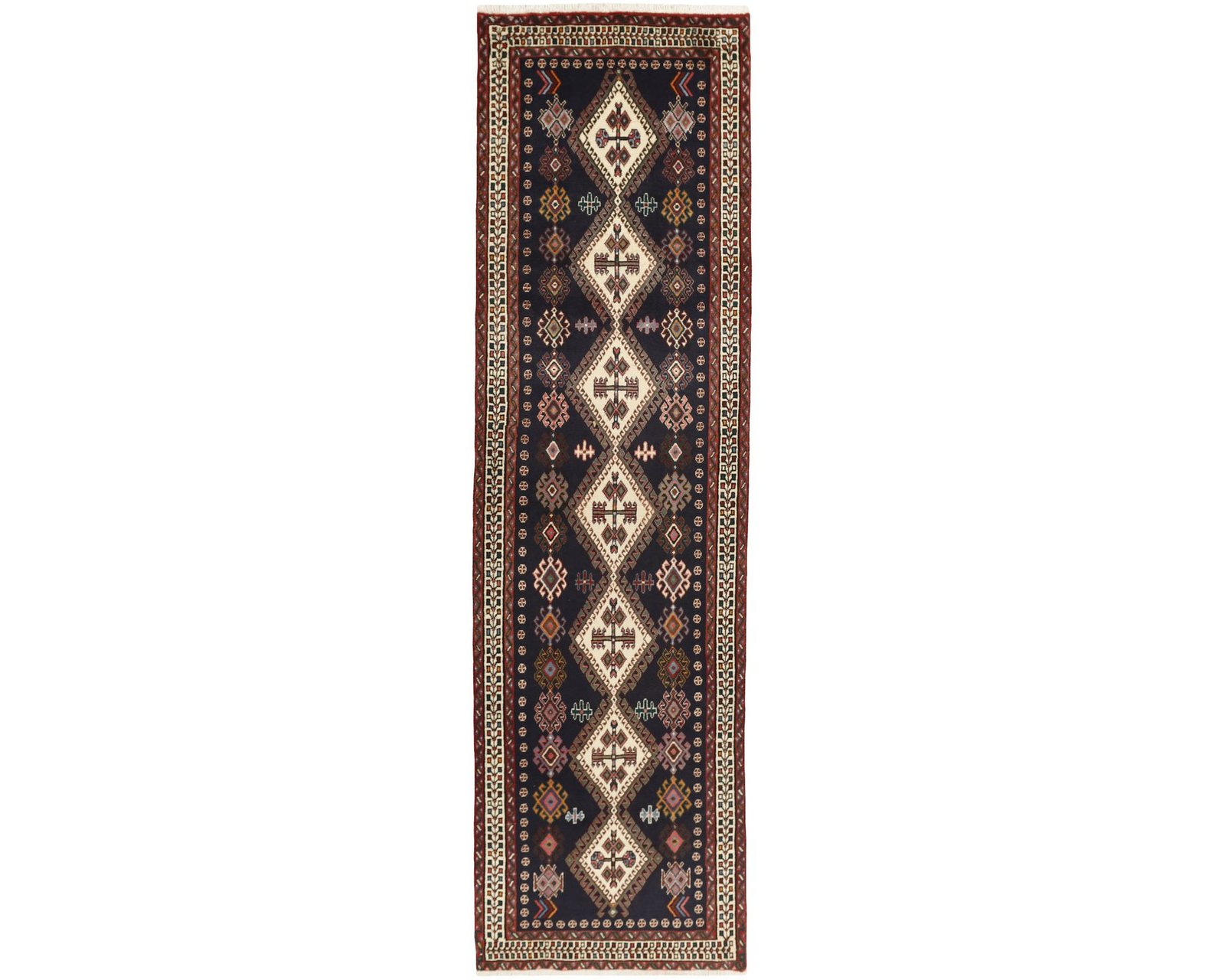 Afshar-mattorna är handknutna ullmattor med varp av bomull, kända för sin stadiga struktur och sina tydliga geometriska mönster. Mönstren kan täcka hela ytan eller bestå av stora medaljonger placerade längs en central axel. Färgskalan domineras ofta av djupa röda och blå toner, men vissa mattor innehåller även djur- eller fågelmotiv och en bredare färgpalett. Med en knuttäthet på 150 000–250 000 knutar per kvadratmeter erbjuder mattorna en väl avvägd kombination av slitstyrka och detaljrikedom. Oanvänd.