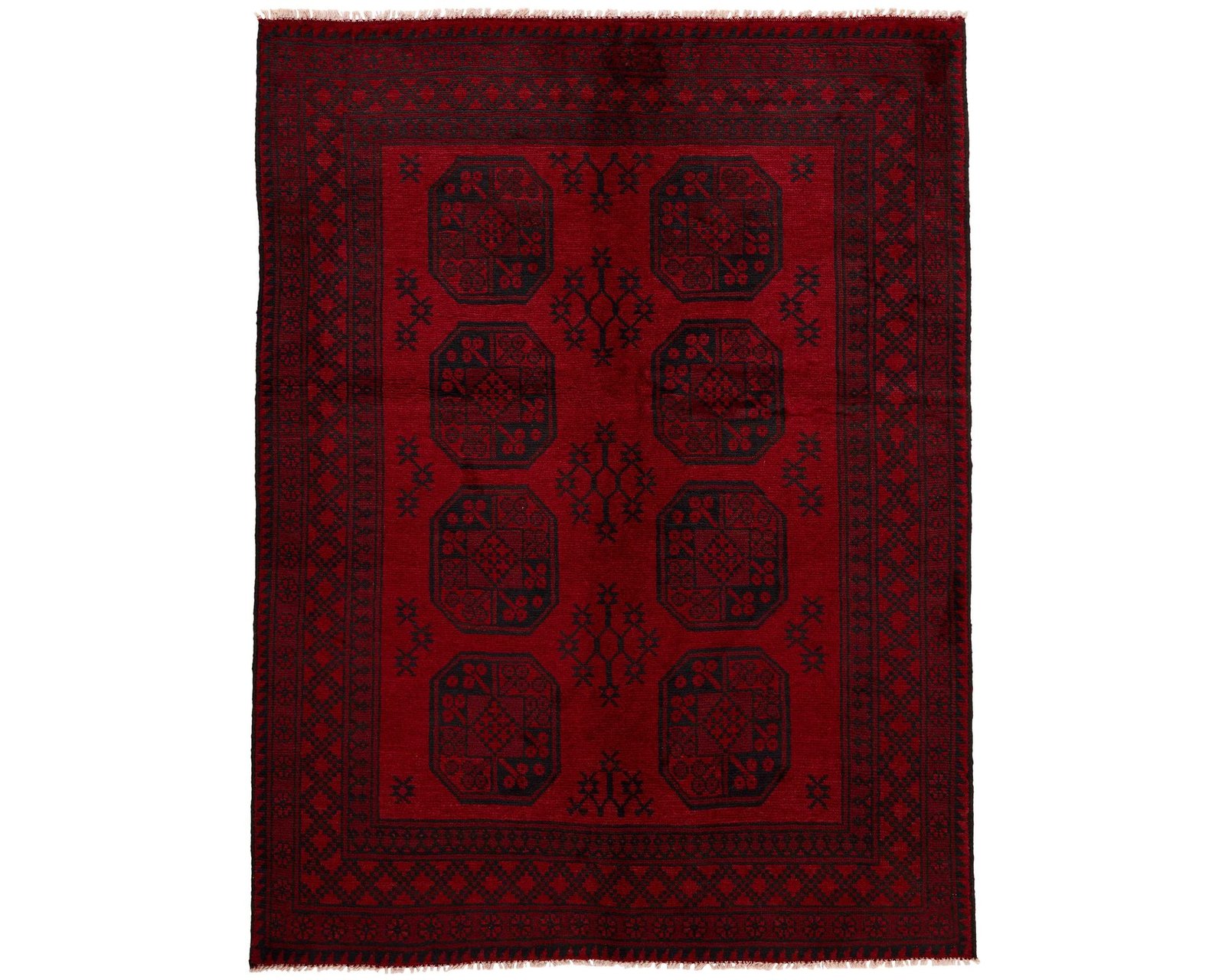 Aktscha-mattorna är handknutna och utmärks av en djup, varm röd bottenfärg samt en robust yta med relativt hög lugg. De är tillverkade av en blandning av ull, gethår och hästhår. Det dominerande motivet är Gül, även känt som Elefantfotmönstret. Den lägre knuttätheten på 50 000–150 000 knutar per kvadratmeter ger mattan ett kraftfullt och stadigt uttryck. Oanvänd.