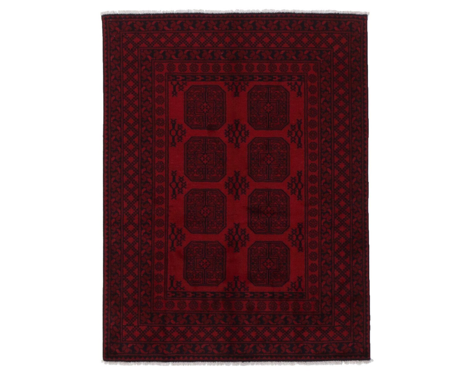 Aktscha-mattorna är handknutna och utmärks av en djup, varm röd bottenfärg samt en robust yta med relativt hög lugg. De är tillverkade av en blandning av ull, gethår och hästhår. Det dominerande motivet är Gül, även känt som Elefantfotmönstret. Den lägre knuttätheten på 50 000–150 000 knutar per kvadratmeter ger mattan ett kraftfullt och stadigt uttryck. Oanvänd.