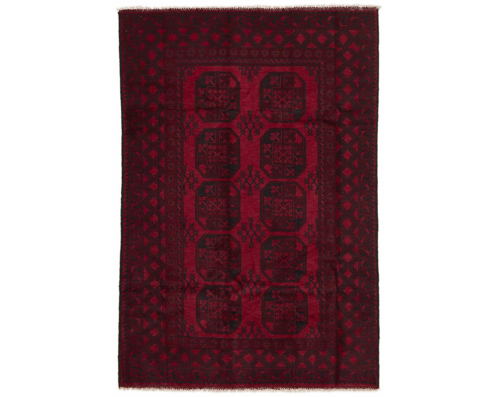 Aktscha-mattorna är handknutna och utmärks av en djup, varm röd bottenfärg samt en robust yta med relativt hög lugg. De är tillverkade av en blandning av ull, gethår och hästhår. Det dominerande motivet är Gül, även känt som Elefantfotmönstret. Den lägre knuttätheten på 50 000–150 000 knutar per kvadratmeter ger mattan ett kraftfullt och stadigt uttryck. Oanvänd.