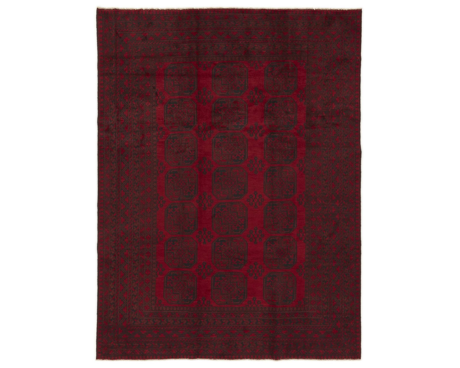 Aktscha-mattorna är handknutna och utmärks av en djup, varm röd bottenfärg samt en robust yta med relativt hög lugg. De är tillverkade av en blandning av ull, gethår och hästhår. Det dominerande motivet är Gül, även känt som Elefantfotmönstret. Den lägre knuttätheten på 50 000–150 000 knutar per kvadratmeter ger mattan ett kraftfullt och stadigt uttryck. Oanvänd.