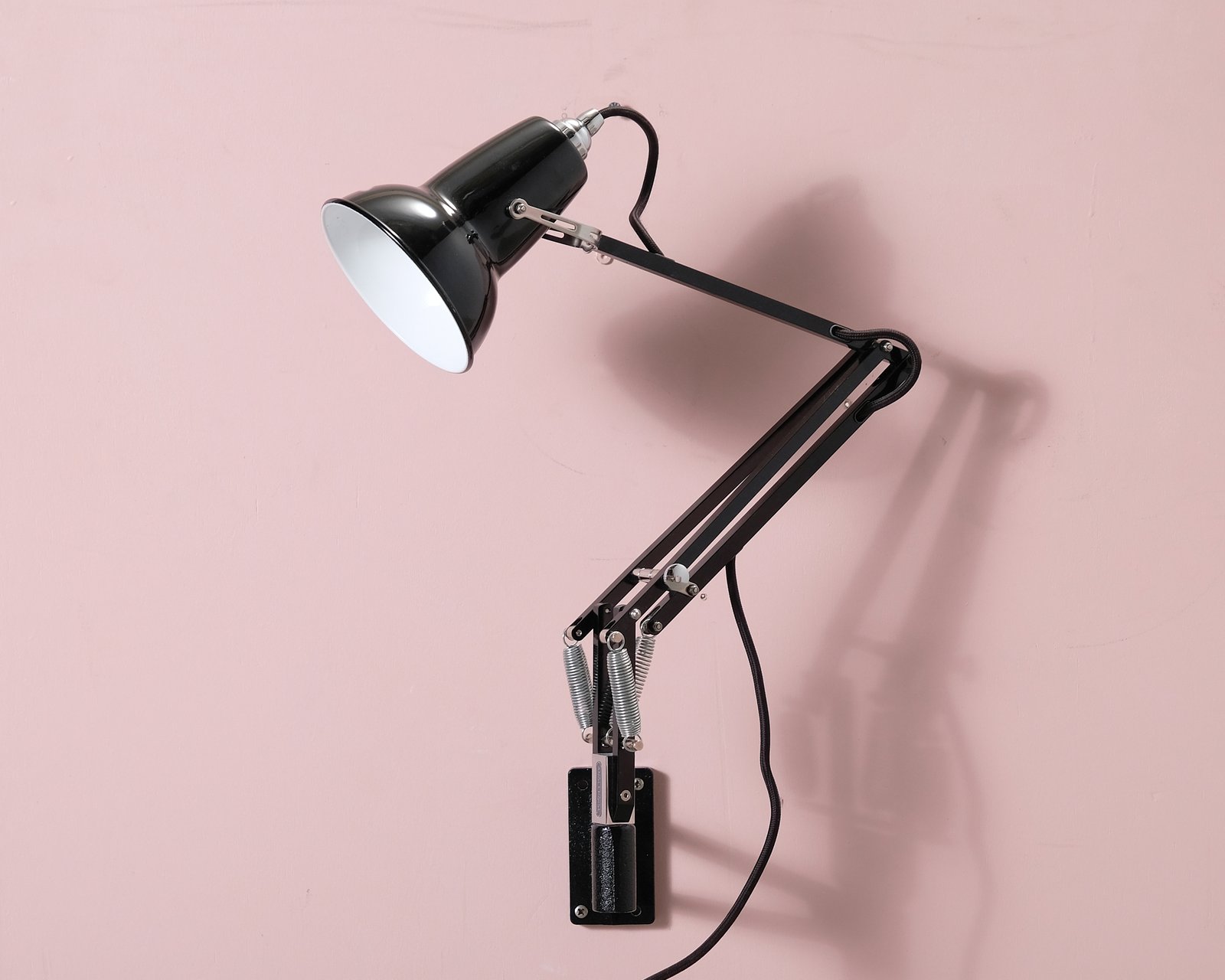 Original 1227 är en ikonisk lampa som designades av George Carwardine för Anglepoise år 1935. Lampan känns igen på sin fjäderförsedda arm, som ger både flexibilitet och funktionalitet. Tillverkad i aluminium och pulverlackerat gjutjärn. Små bruksspår och repor på insidan av lampskärmen. Helhetsintrycket är fint.