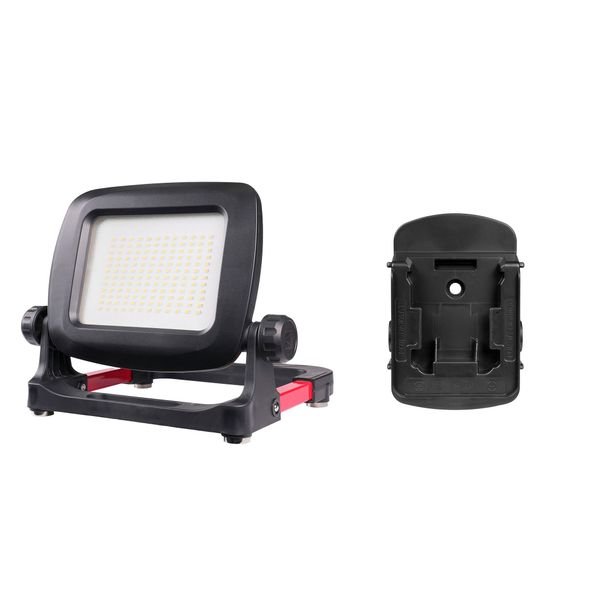 Mycket kraftfull (3500 lm) arbetsbelysning med bred och jämn ljusbild. Direktkompatibel med de vanligaste 18-21V skruvdragarbatterierna, t.ex. Makita, DeWalt, Milwaukee, Bosch, Stanley och Black&Decker batterier. Justerbart ljusflöde, mångsidiga monteringsalternativ, neutral 5000K färgtemperatur.