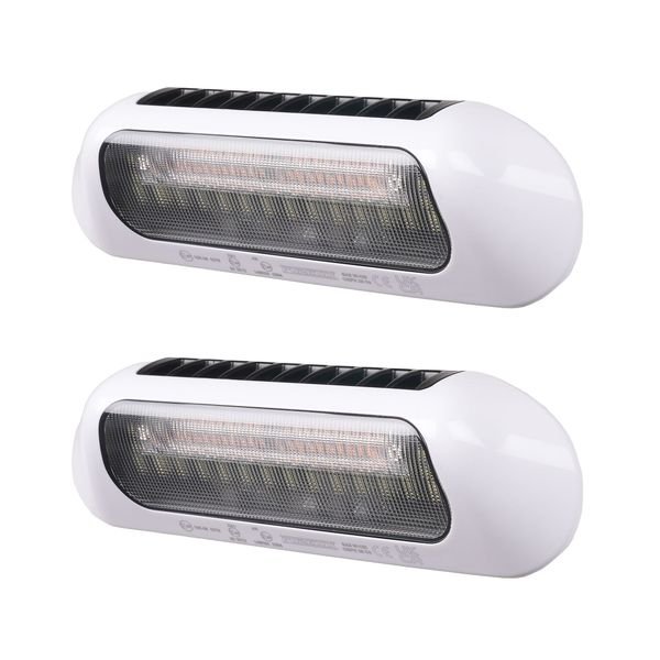 Sidomonterad arbetsbelysning utrustat med ett bred och jämn ljusbild. Lampan är även kombinerat med ett orange varningsljus godkänd för vägtrafik. Arbetsbelysningen lyser upp fordonets omedelbara närhet och varningsljuset möjliggör mångsidig användning även i tunga fordon. Lämplig för 12V och 24V system.