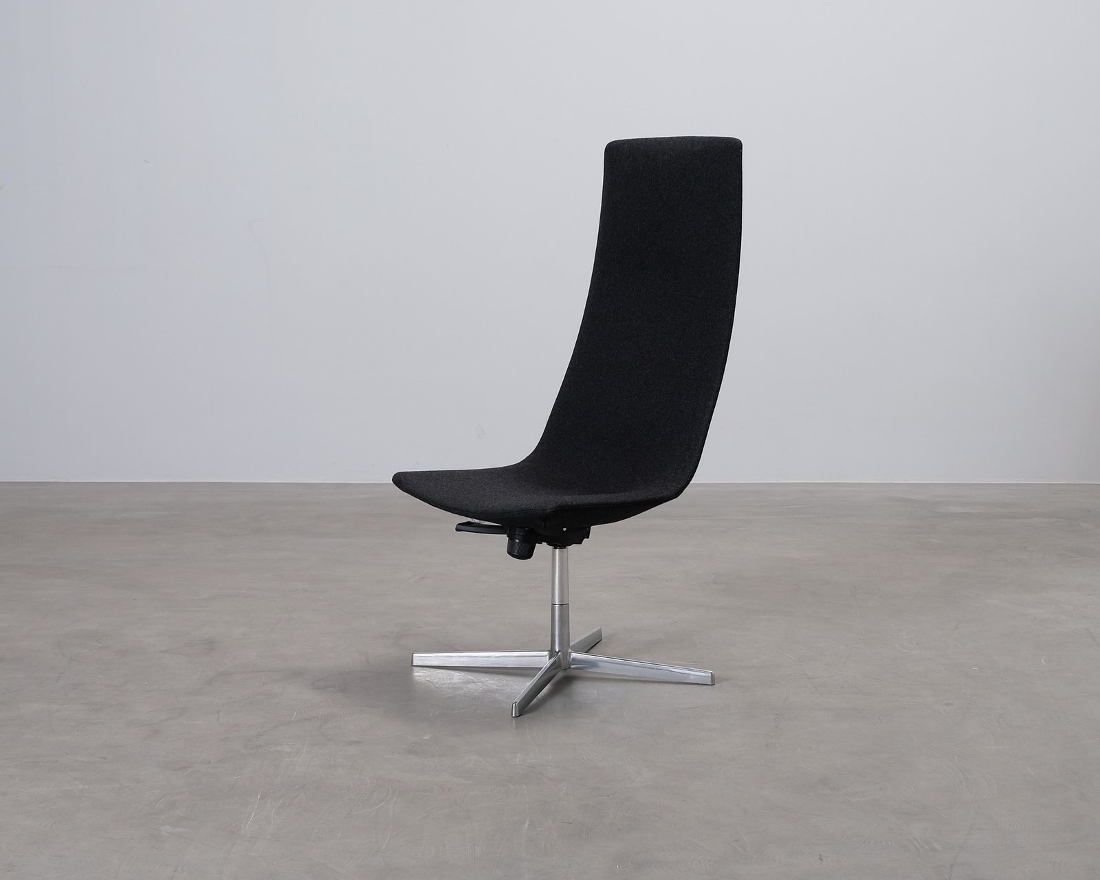 Arper Catifa 70 fåtölj. Eleganta fåtöljen passar både i hem och på kontor. Svart klädsel och fyrdelad fot. Designad av den spanska trion Lievore Altherr Molina. Vähäisiä käytönjälkiä, yleisilme siisti. Korkeussäätö ei toimi.