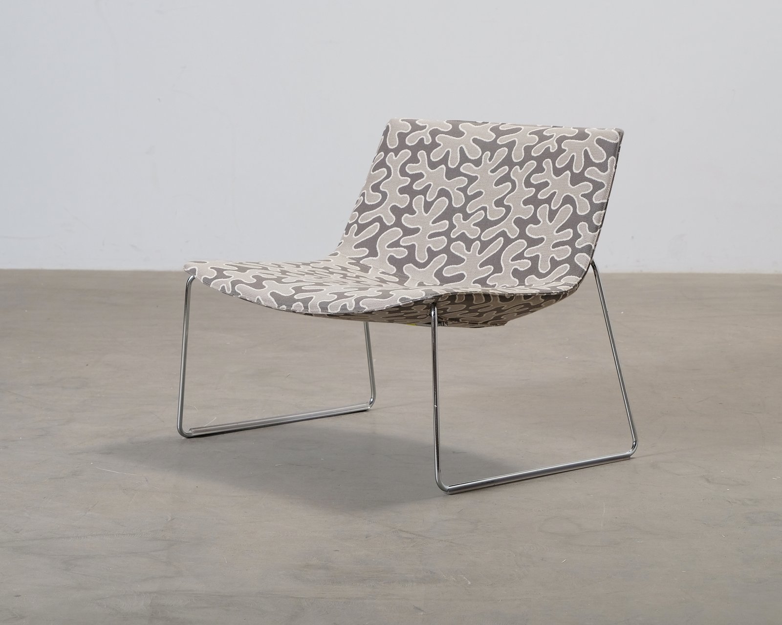 Arper Catifa-fåtölj. Denna minimalistiska fåtölj passar både hemma och på kontoret. Den har personlig tygklädsel och smala metallben. Designad av den spanska trion Lievore Altherr Molina. Tillverkad i Italien. Små spår av användning. Helhetsintrycket är fint.