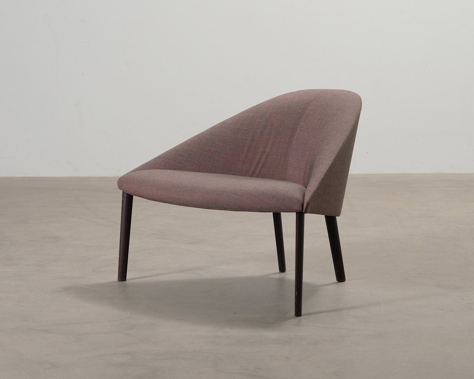 Arper Colina M fåtölj är en fröjd för ögat med sin diagonala design. Fåtöljen är designad av Lievore Altherr Molina och passar perfekt för kontor och offentliga utrymmen, men också för vardagsrum i privata hem. Klädsel i tyg och ben i trä. Normalt bruksslitage och en lätt fläck på sätesklädseln, som inte gick bort i tvätten. Helhetsintrycket är bra.