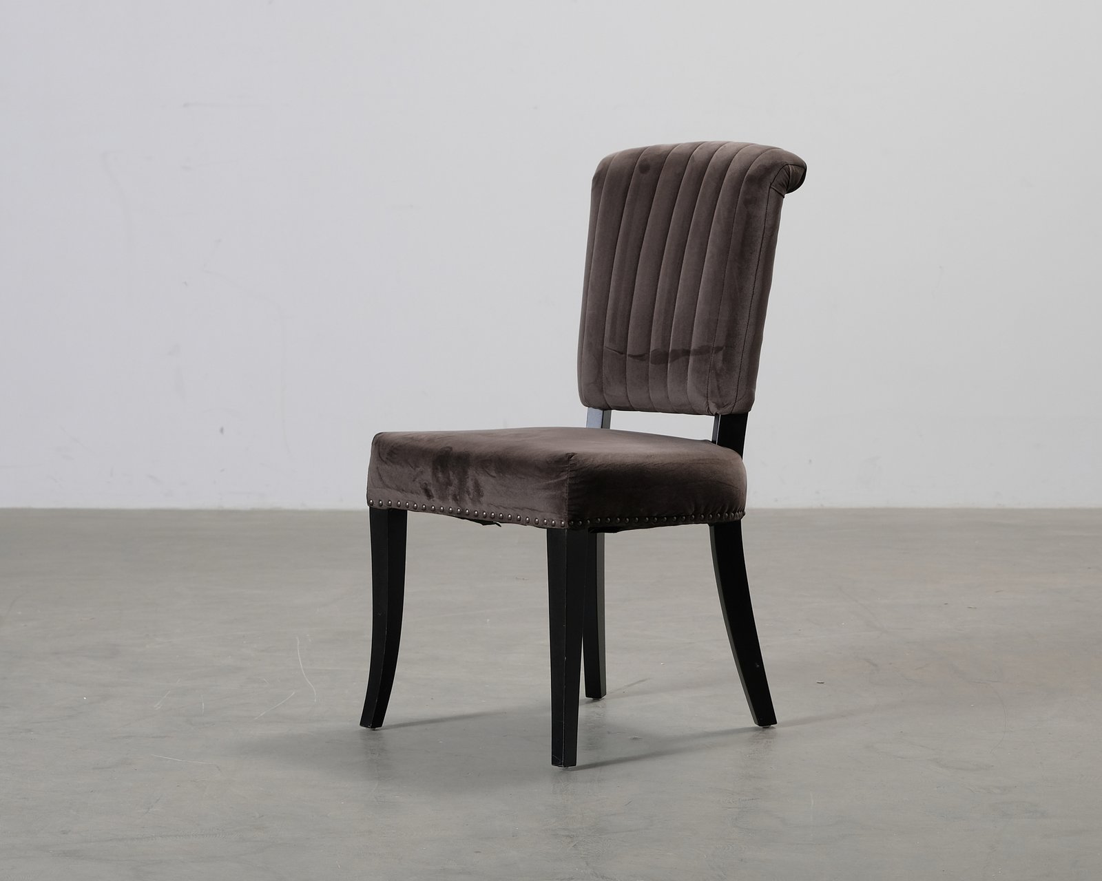 En fantastisk matstol från Artwood som ger klassisk elegans till ditt matrum. Hög rygg, plyschkuddar och härligt mjuk sammetsklädsel gör stolen bekväm att sitta i. Färgblekning på klädseln, slitage på benen och ett hål i tyget på undersidan.