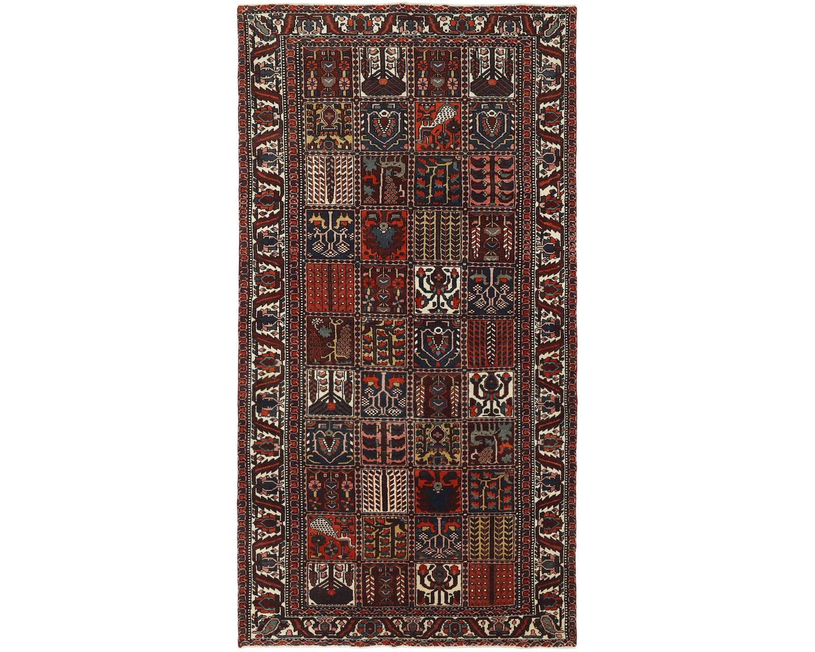 Bakhtiyar-mattorna är handknutna ullmattor som tillverkas i området kring Zagrosbergen. De utmärks av kraftfulla, rustika mönster, ofta med en central medaljong eller kvadratiskt indelade fält fyllda med blommotiv. Mattorna har tydliga kanter som skapar ett starkt helhetsintryck. Färgerna hämtas ofta från växtbaserade pigment, vilket ger en naturlig och harmonisk färgskala. Knuttätheten ligger mellan 150 000 och 250 000 knutar per kvadratmeter. Oanvänd.