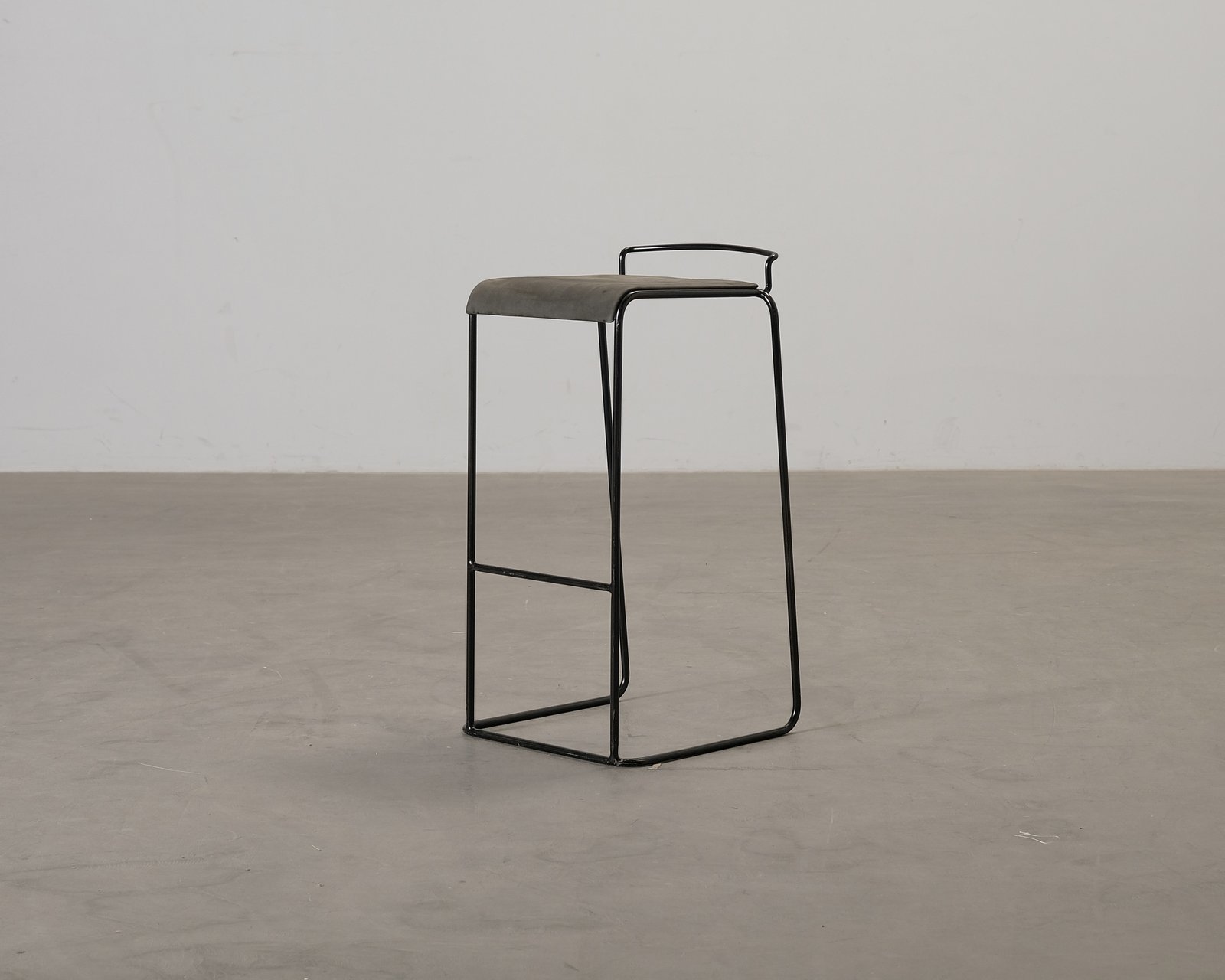 Snygg barstol i industriell stil med metallram och klädd sits. Normalt bruksslitage och repor. Helhetsintrycket är bra.