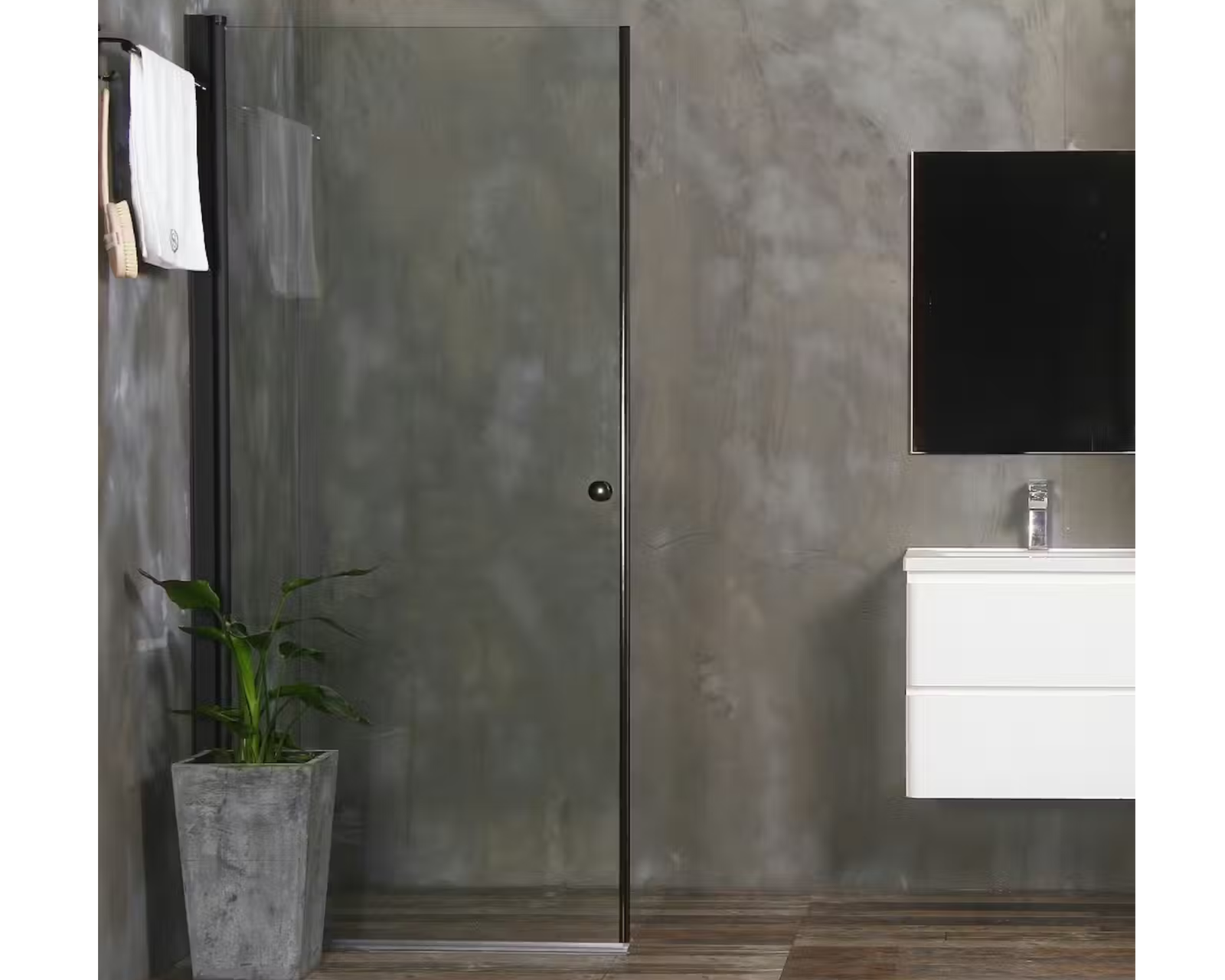 Bathlife Mångsidig är en stabil duschdörr i 6 mm härdat glas som kan fällas både inåt och utåt. Profilerna är i aluminium med lyftgångjärn för enkel öppning, och en gummilist i botten säkerställer en tät förslutning.