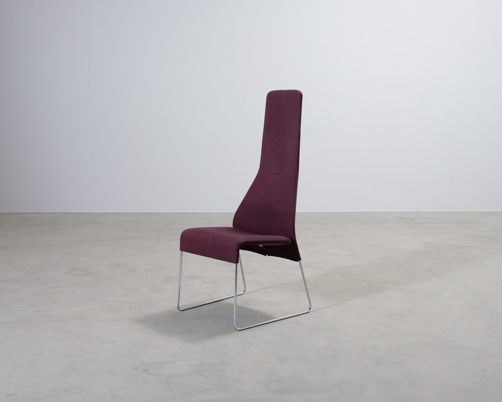 B&B Italias Lazy matstol med hög rygg. Ram I förkromat stål och avtagbar klädsel. Lazy smälter sömlöst in både i klassisk och modern inredningsstil. Formgiven av Patricia Urquiola. Bruksslitage och andra små märken på klädseln.