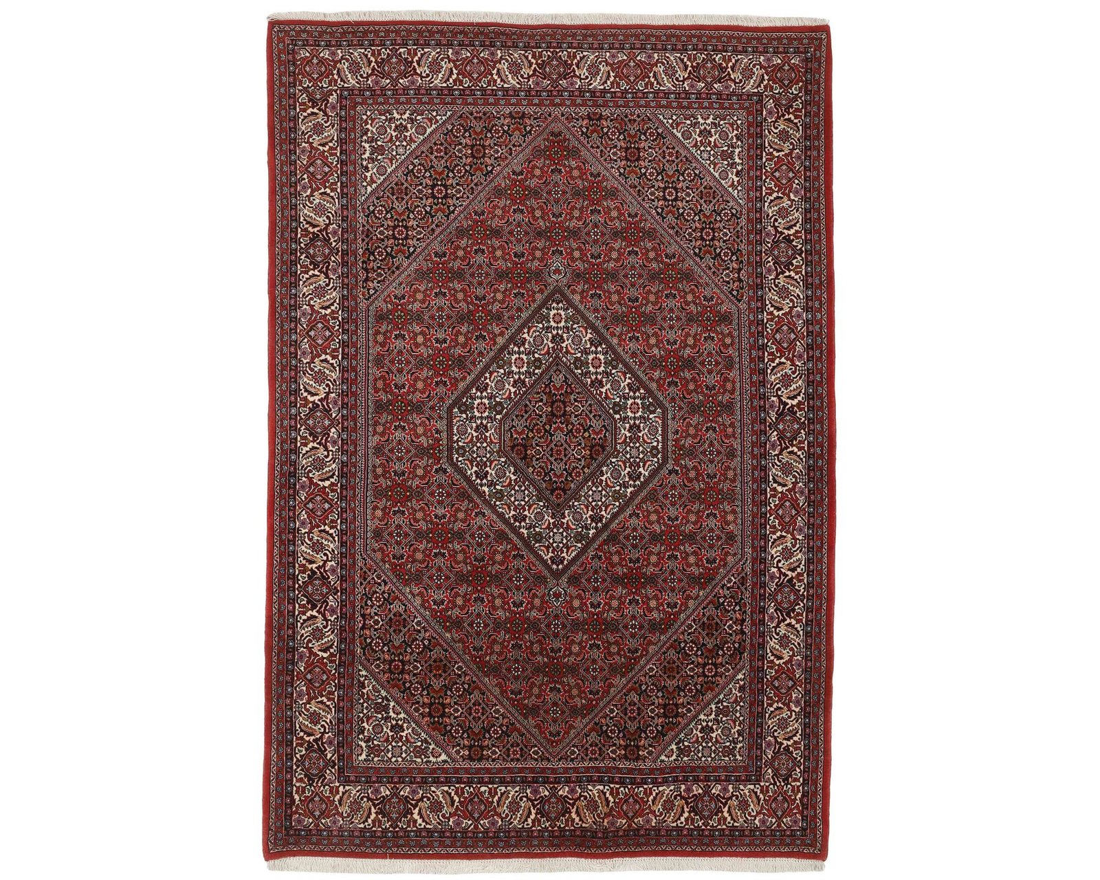 Bidjar Zandjan-mattorna är kända för sin exceptionellt täta och fasta konstruktion, som ger mattan en tung och kompakt känsla. De är handknutna i ull och kännetecknas av distinkta röda toner, ofta kompletterade med ljusare detaljer. Mönstren bygger vanligen på Herati-design. Den extremt täta knutningen gör mattorna styva, och de bör därför rullas med luggen utåt för att undvika skador på knutarna. Mattorna är tyngre och mindre flexibla än de flesta andra ullmattor. Knuttätheten ligger mellan 250 000 och 350 000 knutar per kvadratmeter. Oanvänd.