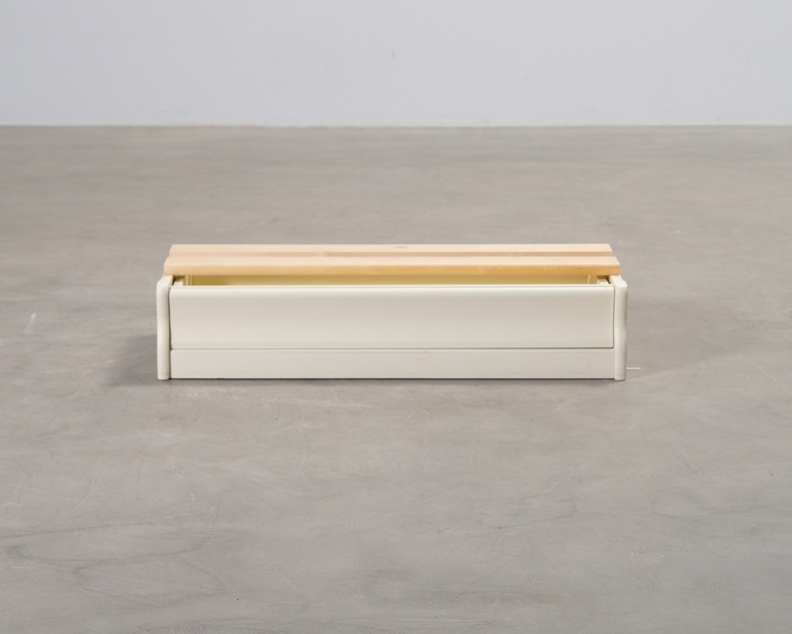Golvsockel för pärmvitrin av Boknäs. Med olika stapelbara Boknäs-element bygger du hyllor och skåp som passar just ditt hem. Betydligt med repor. En röd fläck på framsidan.