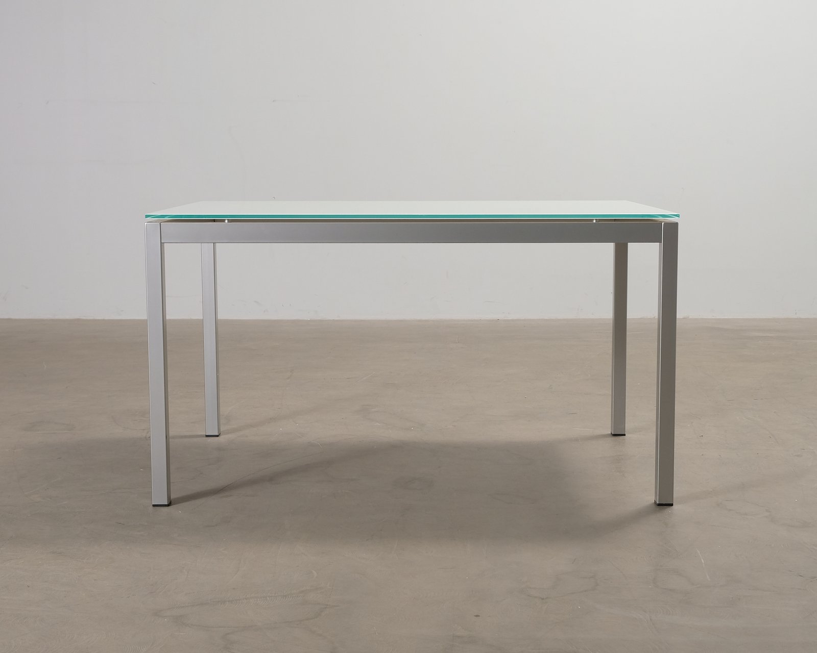 Matbord från italienska Calligaris. Bordsskiva i härdat glas, metallstomme. Repor och slitage på glasskivan. Bordets ram är något sned och glasskivan vinglade till, men detta har korrigerats med en tass.