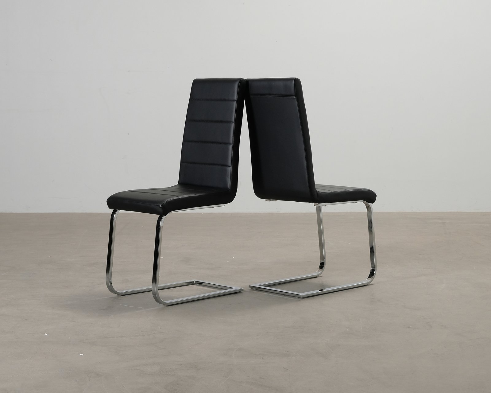 Cibus matstol i konstskinn som passar bra ihop med modern inredningsstil. Underrede i metall. Säljs som ett set om 2. Stolarna är oanvända, men det finns en fördjupning i sitsen på den andra stolen.