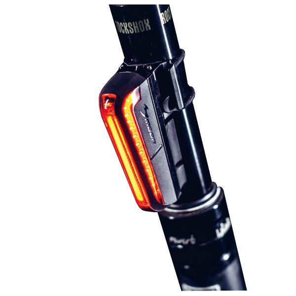 Modern och smidig baklampa för cykeln. Upp till 150 lumen ljusflöde. USB-laddbar.