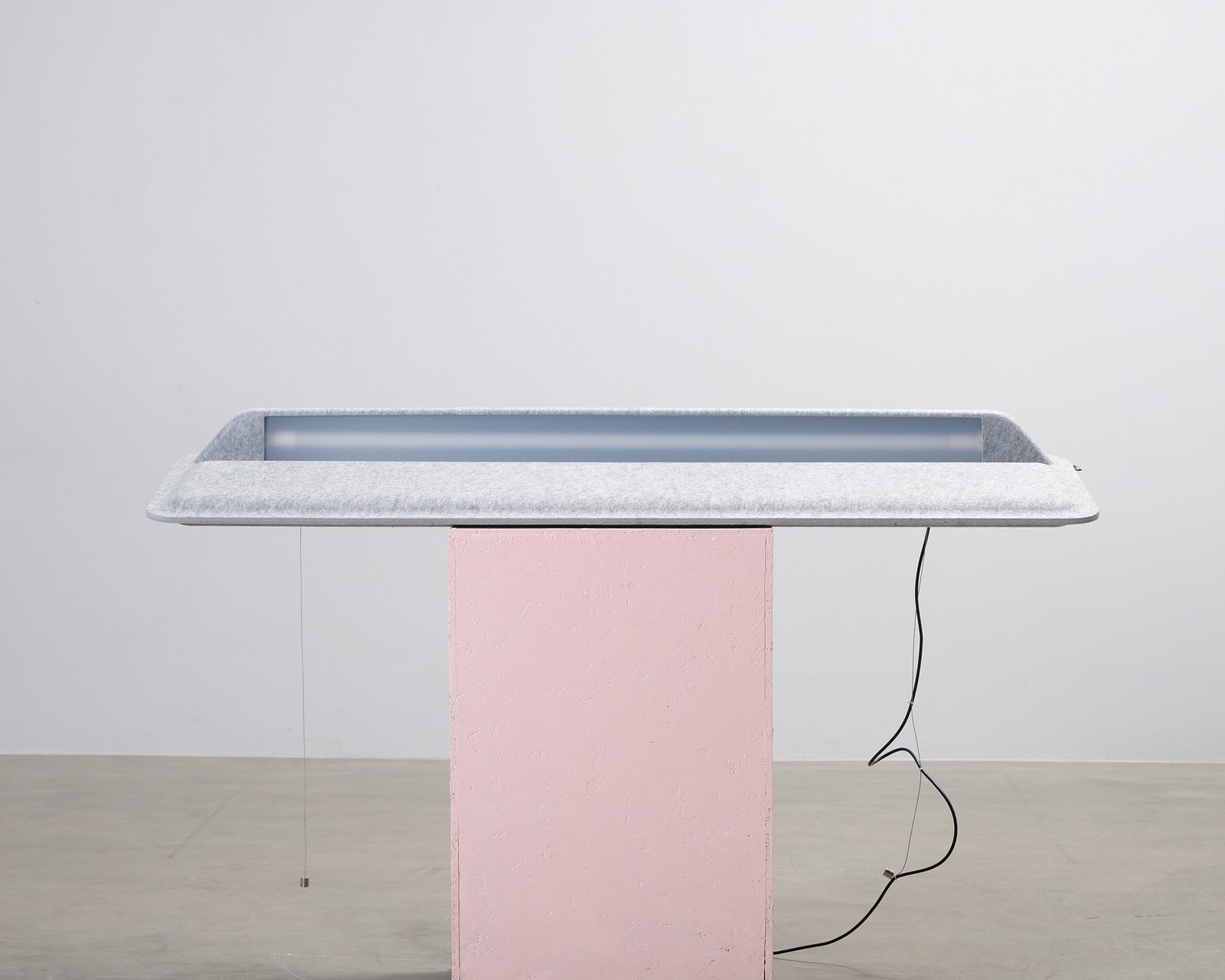 AK 2 Workplace Divider pendellampa från märket De Vorm. Armaturen är avsedd att användas i öppna kontor och arbetsrum för att dela skrivbordet eller arbetsytan. Lampan är tillverkad av PET-plast och fungerar även som en ljuddämpande akustikpanel. Bra skick.