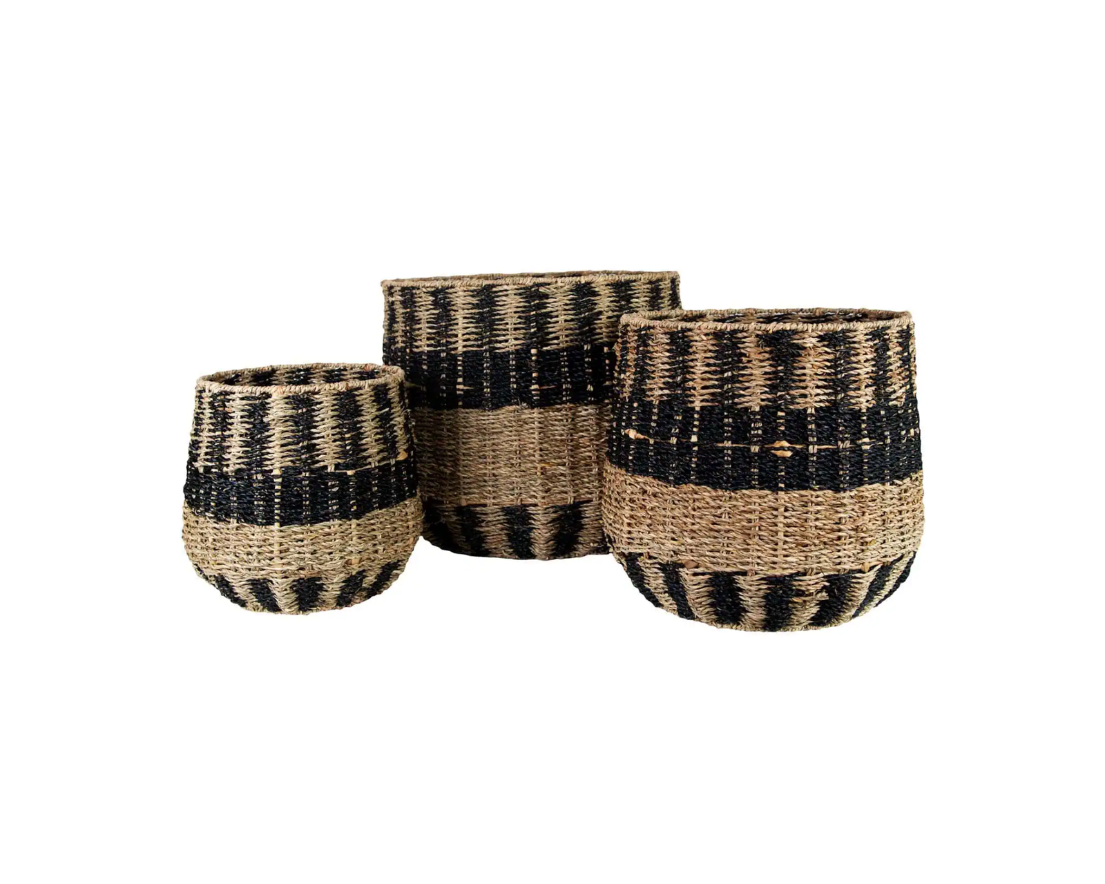 Deco Nords praktiska och vackra naturliga korgar passar för en mängd olika förvaringsändamål. Tillverkad av tång. Mått: 44 x 38 cm, 36,5 x 33 cm och 29 x 28 cm. Oanvänd
