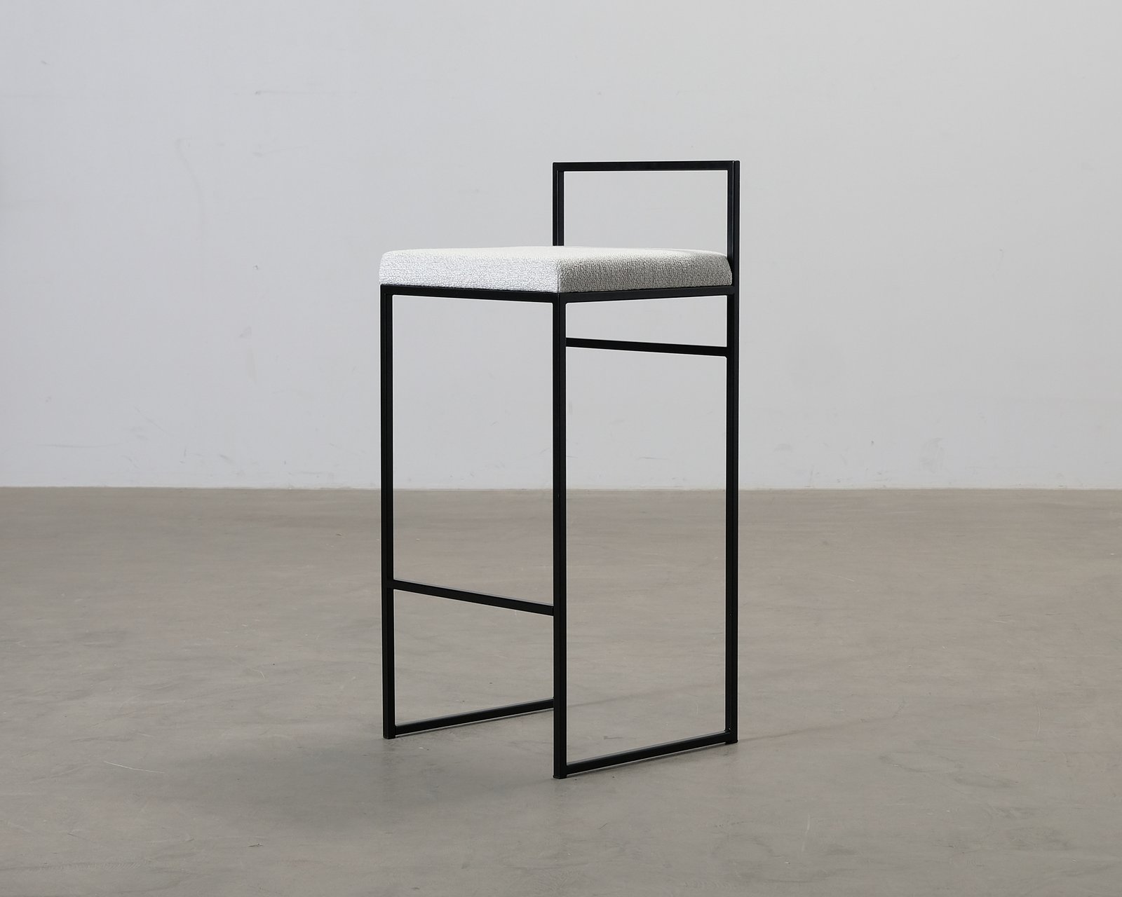 Department barstol har en modern design med rena, eleganta linjer och en industriell touch. Stommen är tillverkad i lackerat stål och utrustad med ett praktiskt fotstöd samt bekväm ryggstöd. Den mjuka sitsen är klädd i exklusivt tyg, vilket gör den både bekväm och stilfull för alla miljöer. I utmärkt skick.