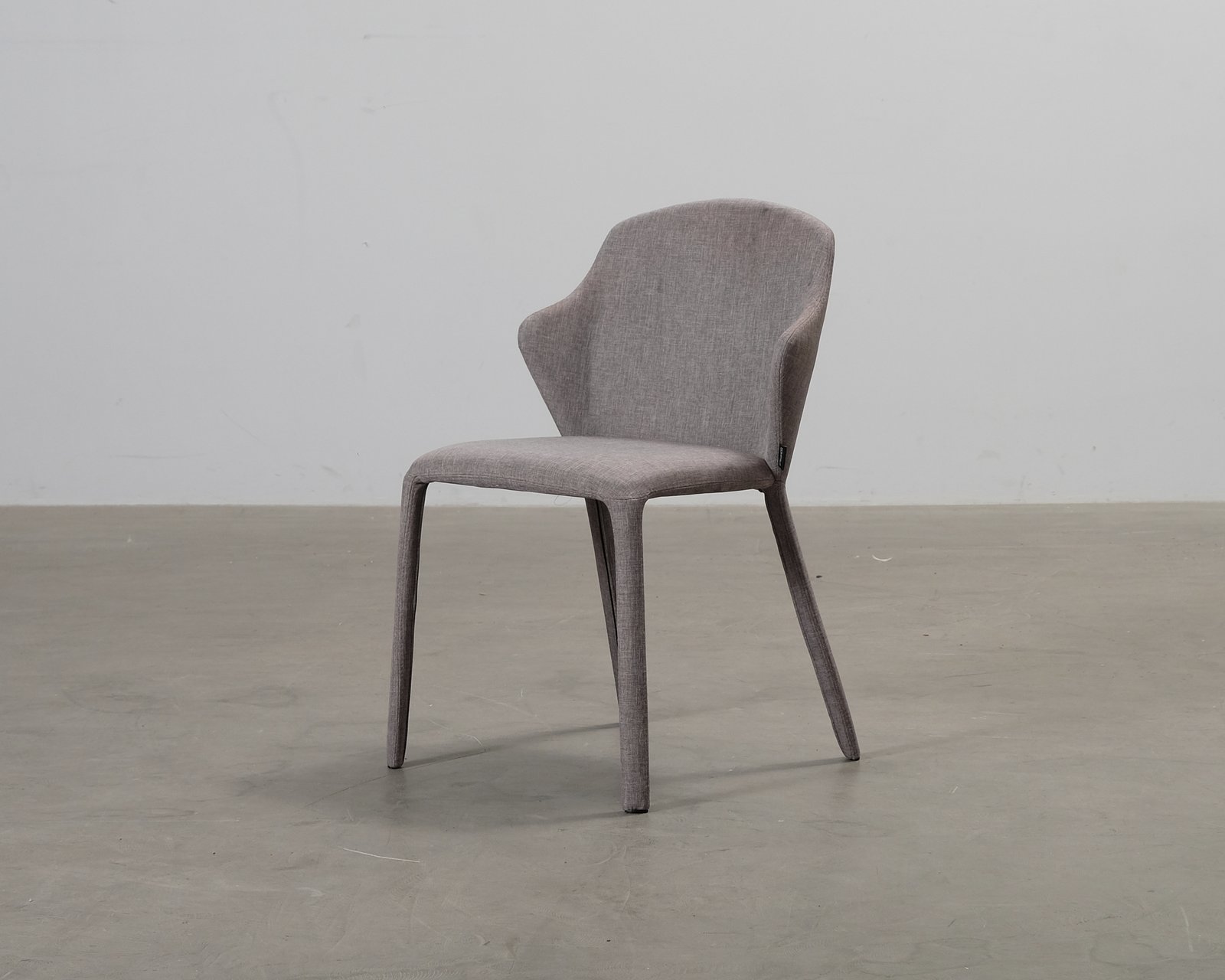 Opera från Domitalia är en snygg och modern stol, perfekt för matbordet. Stolen är helklädd i beige-grått tyg. Fläckar och slitage. Helhetsintrycket är bra.