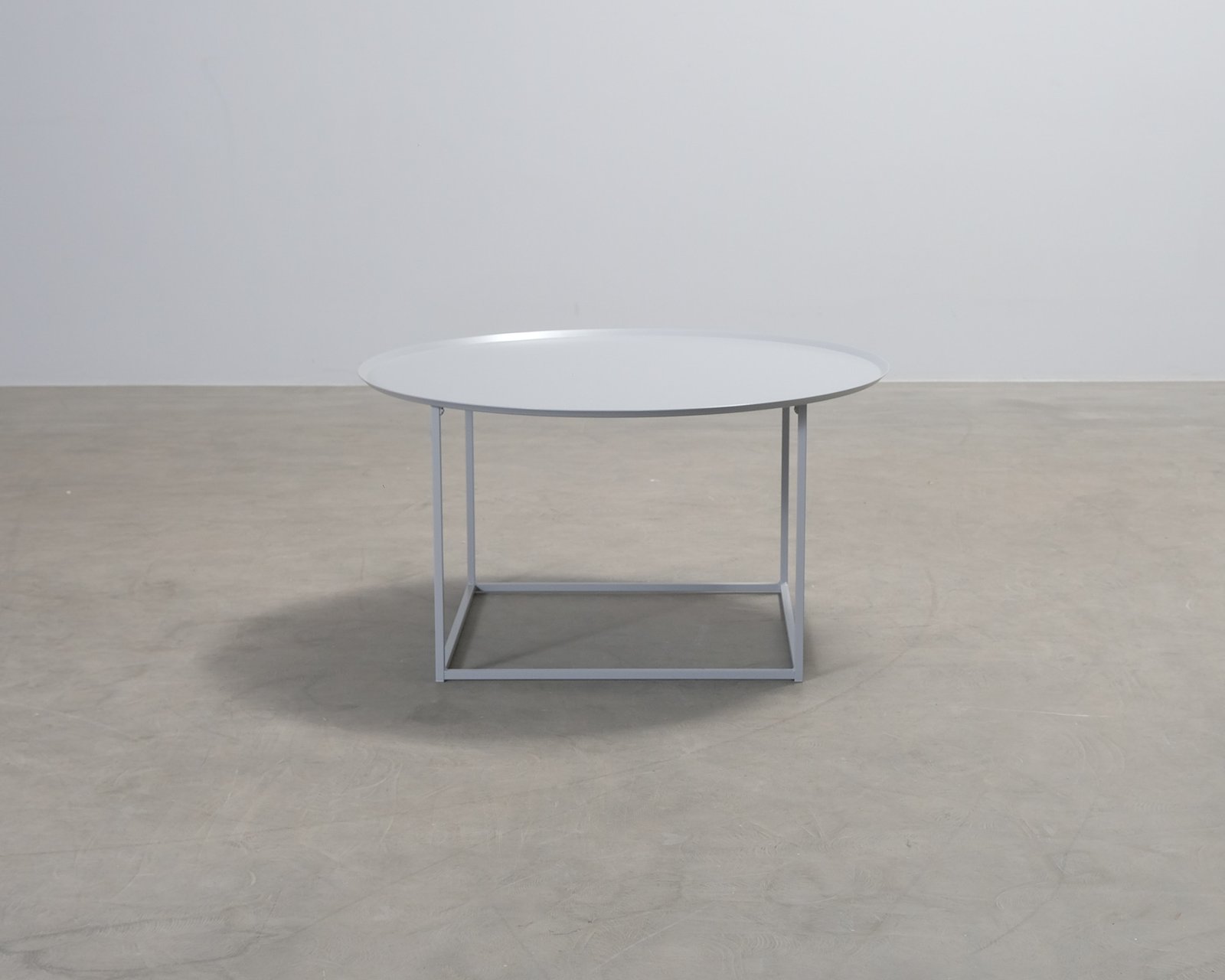 Domos moderna och stilrena runda soffbord som är tillverkat i metall. Den gråa färgen passar in i varje hem. Smått slitage på bordsskivan, helhetsintrycket är fint.