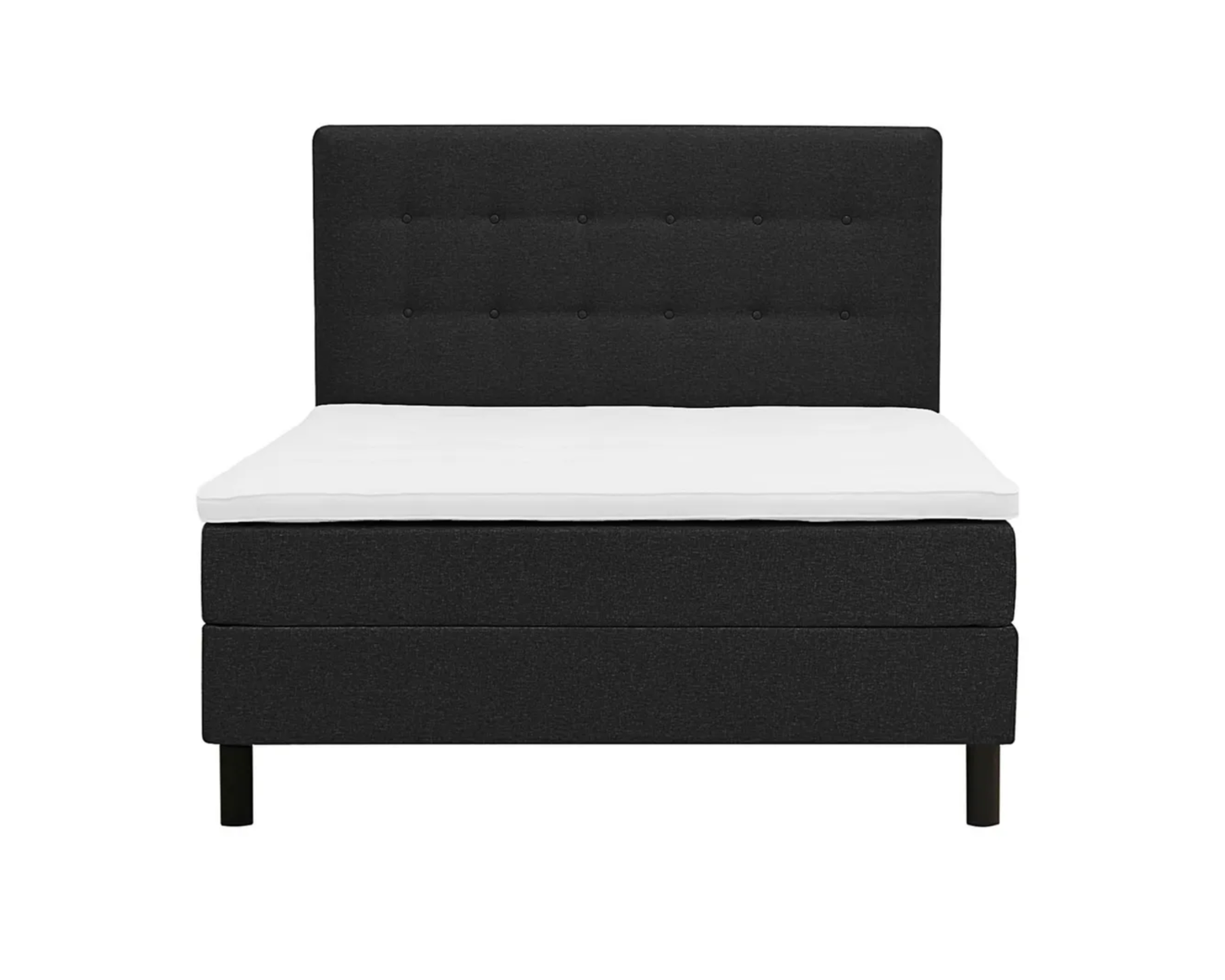 Dream-sängpaket inkluderar stomme, madrass och ben. Dream-sängen erbjuder utmärkt komfort, och dess svarta tygklädsel gör den enkel att kombinera med olika inredningsstilar. Sängstommen är tillverkad av trä och spånskiva, och benen är av plast. Madrassens fasthet: Medium.