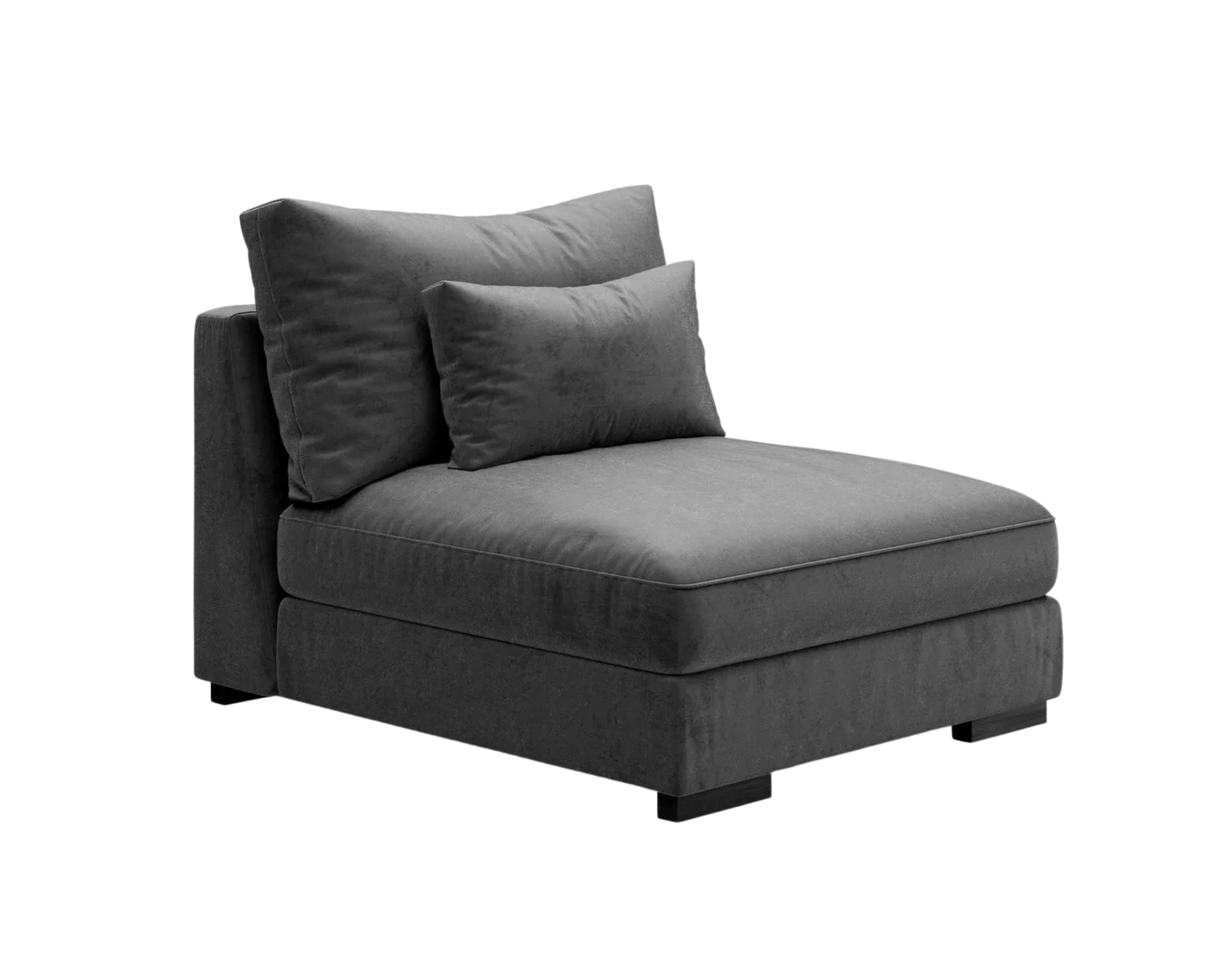 Du kan kombinera Dubai soffmodul med andra delar av setet eller använda den som en fåtölj. Klädsel i mörkgrå sammet och ben i trä.