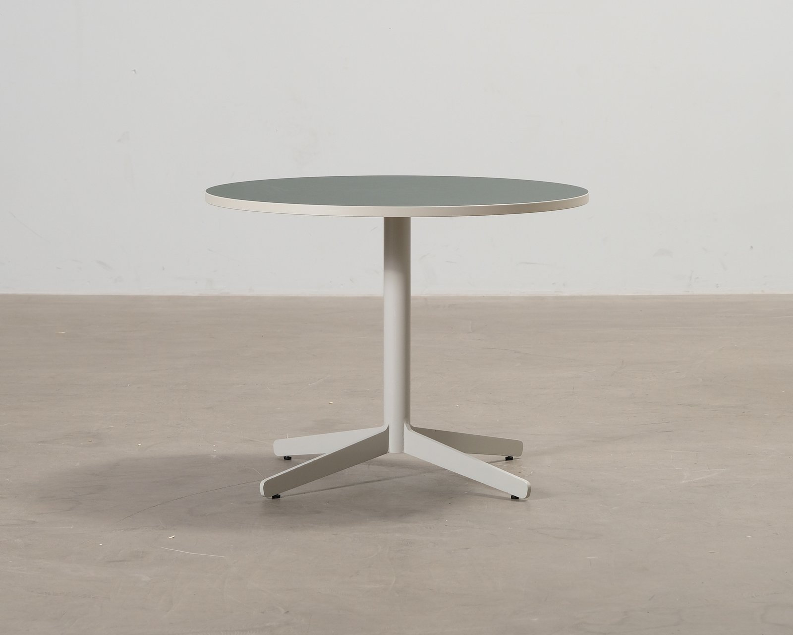 Feather är ett bord som kan användas i många olika utrymmen, med en minimalistisk stil som är lätt att gilla. Mörkgrön bordsskiva och grå ben. Normalt bruksslitage, små bucklor och repor. Helhetsintrycket är bra.