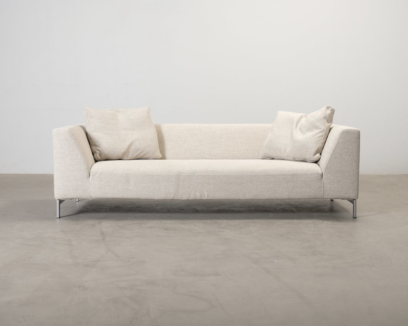 Underbart avslappnad och högkvalitativ 3-sitssoffa från den danska möbeltillverkaren Eilersen. Den livfulla strukturen på den grå-beige tygklädseln fulländar soffans stilrena utseende. Lätt användningsspår på benen. Trådsnodd på ryggstödet och armstöden. Helhetsintrycket är fint.