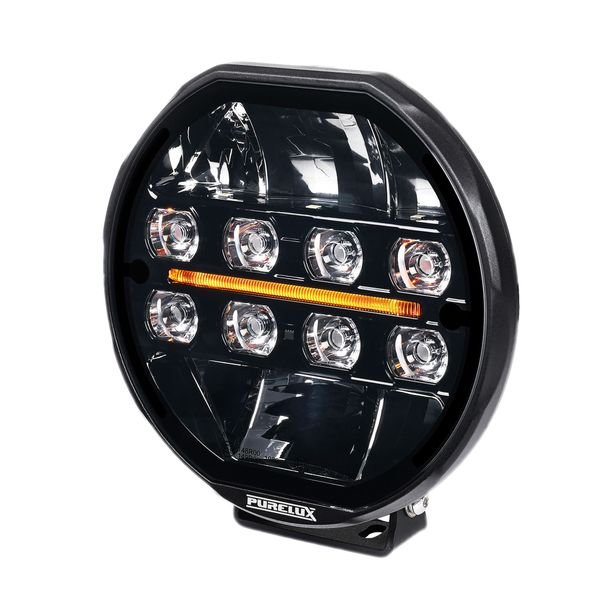 Runt extraljus som representerar den absoluta toppen i sin storleksklass, vars toppegenskaper inkluderar bl.a. Purelux PowerBoost®, exceptionellt bra kombinerad ljusbild och tvåfärgat (orange och vit) parkeringsljus! Uppmätt ljusflöde 10487lm, räckvidd 551 m @ 1 lux.