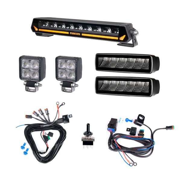 Komplett extraljuspaket designat för terränghjulingar, inkluderar en av de mest effektiva extraljusramperna i sin storleksklass och fyra högpresterande arbetsljus, som kan användas för att belysa runt om fordonet effektivt. Även reläkabelsatser och en strömbrytare medföljs, det vill säga allt du behöver!