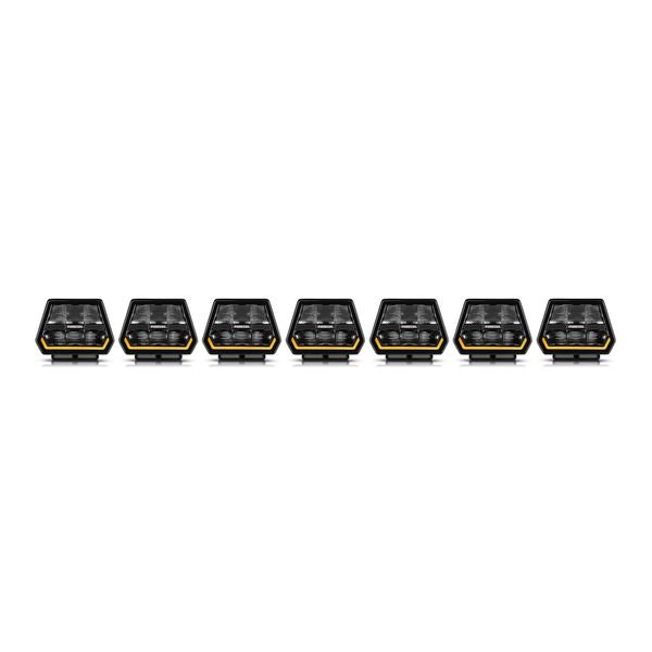 En extremt snygg ljusuppsättning bestående av 6-8 Purelux Panther 5 extraljus för t.ex. SUV-tak, lastbilar eller andra stora fordon. Ljusen monteras sida vid sida och bildar en ljuspanel med ett häftigt utseende. Ljusflöde upp till 52 000 lm, bredd 932 – 1246 mm.