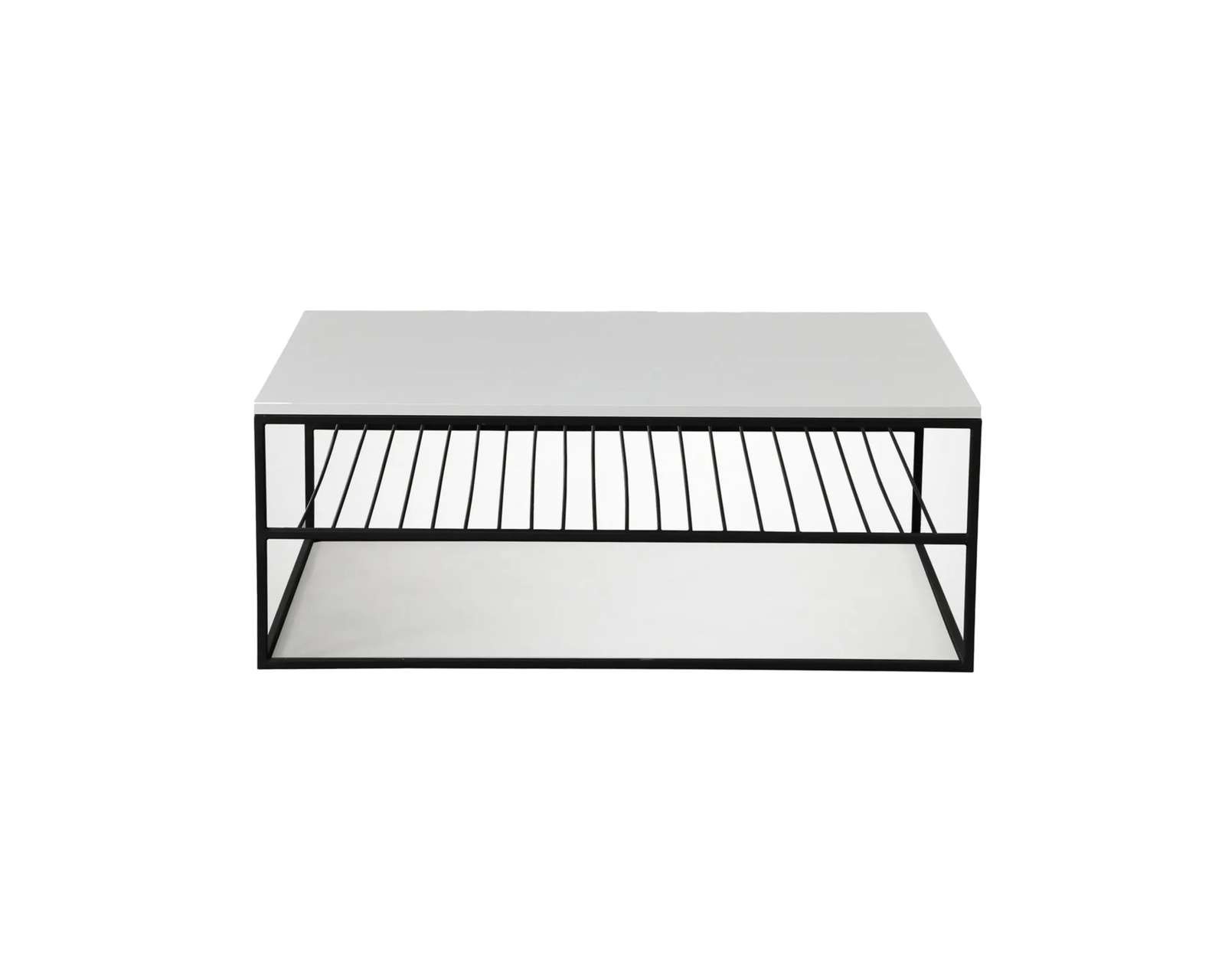 Ett minimalistiskt och praktiskt soffbord som lätt passar ihop med olika inredningsstilar. Tillverkat av metall, melamin och spånskiva.