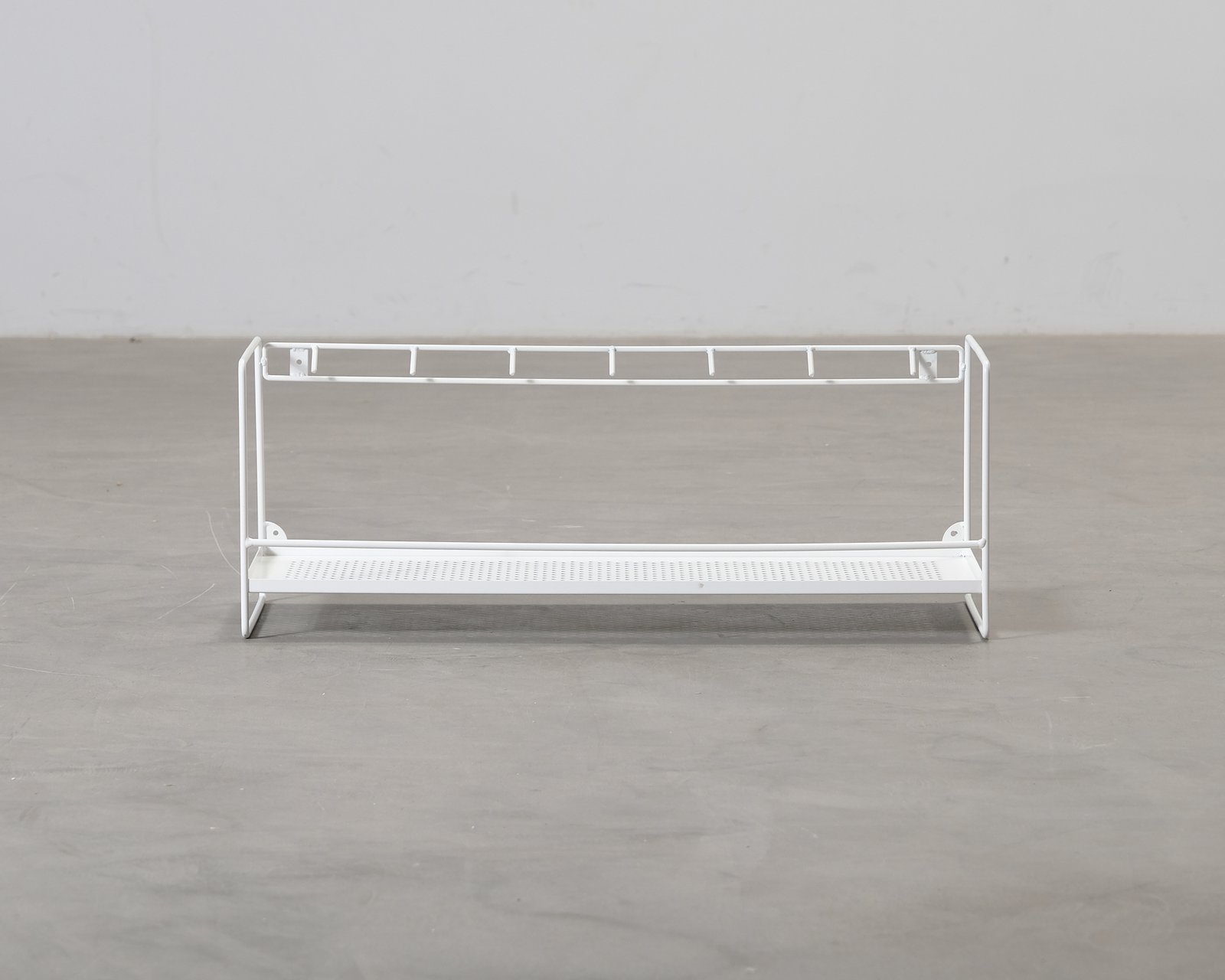 FeelDesigns Alex väggmonterade klädhängare erbjuder praktisk förvaring i hallen. Tillverkad av vitmålad metall. Några ytliga repor. Monteringsskruvar ingår ej. Helhetsintrycket är fint.