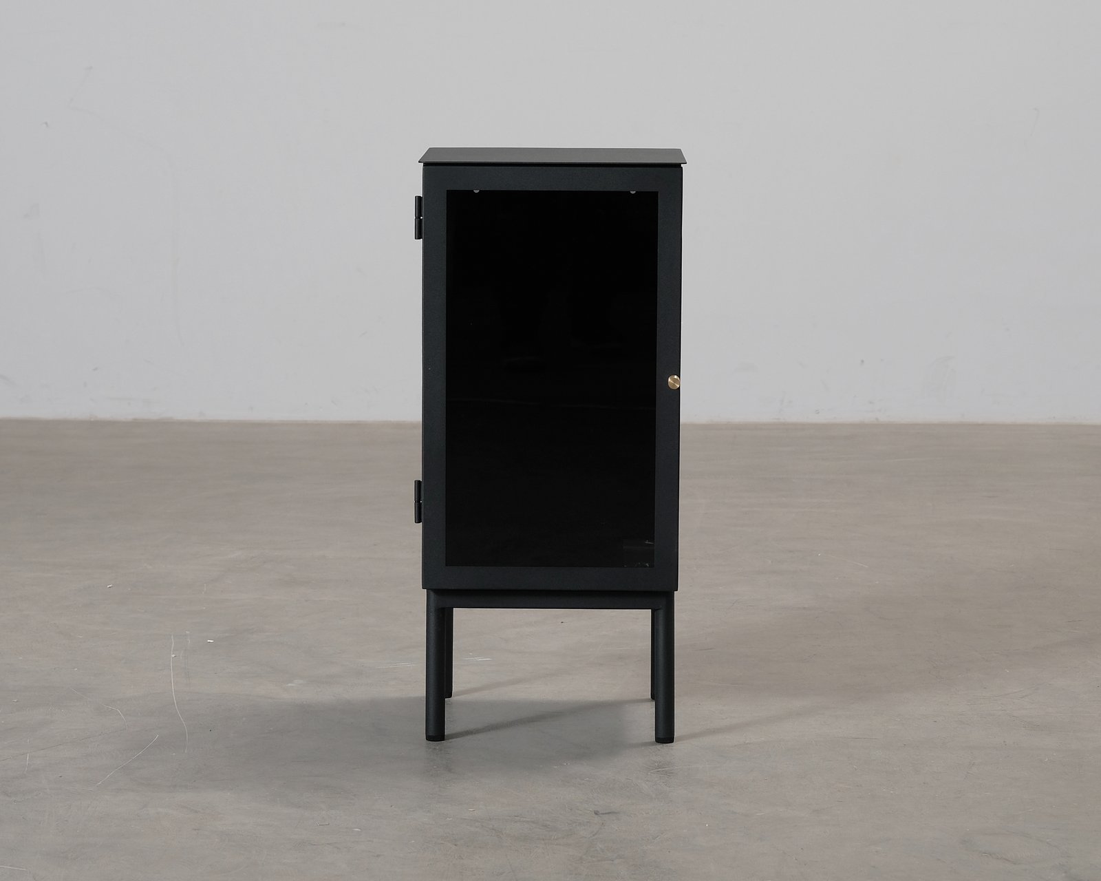 Ett stilrent och praktiskt nattduksbord från FeelDesign som erbjuder förvaringsutrymme och ger ett elegant intryck i sovrummet. Tillverkat av metall och glas.