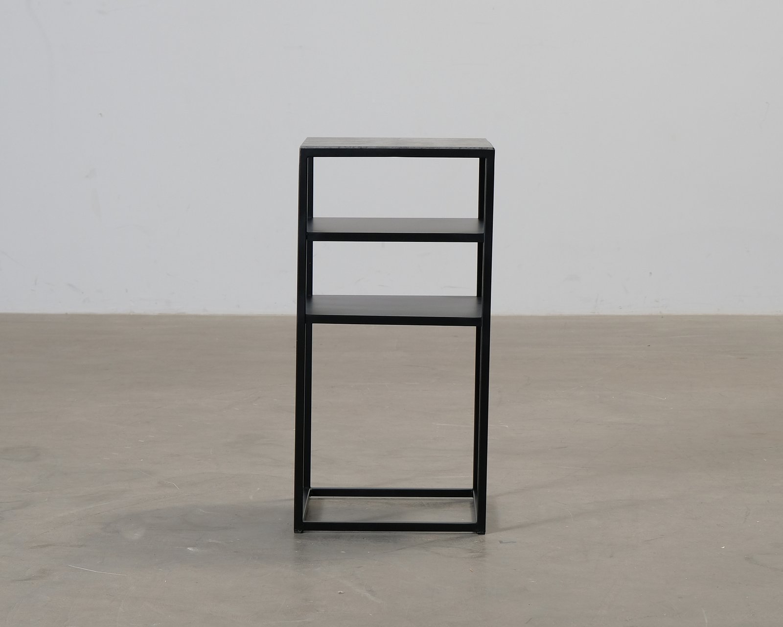 Ett minimalistiskt och tidlöst sängbord tillverkat av FeelDesign, som erbjuder förvaringsutrymme och skapar en stilren look i sovrummet. Stommen är tillverkad av pulverlackerad metall och bordsskivan är av laminat. Oanvänd