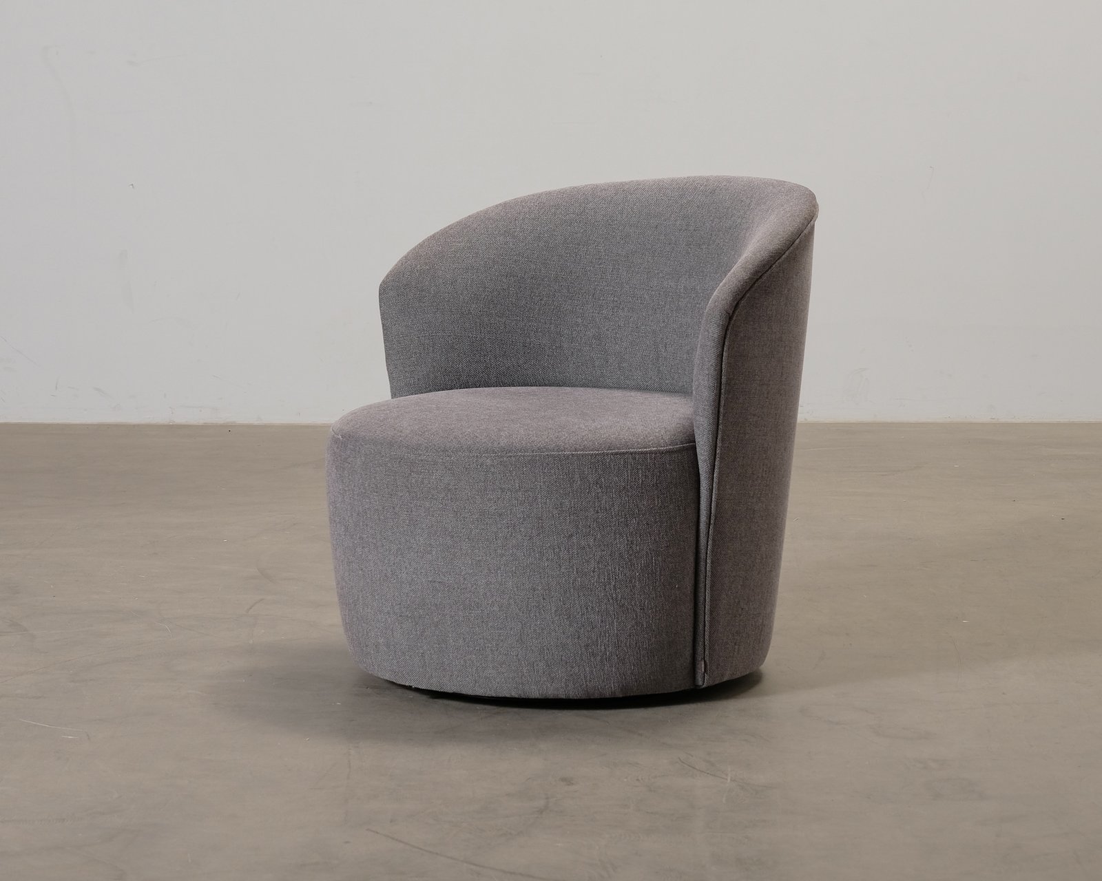 Den skulpturala fåtöljen Flair charmar med sin vackra silhuett, och tack vare sin minimalistiska design smälter fåtöljen enkelt in i olika inredningsstilar. Fåtöljen har ett vridbart säte. Små rynkor på ryggstödet. Helhetsintrycket är fint.