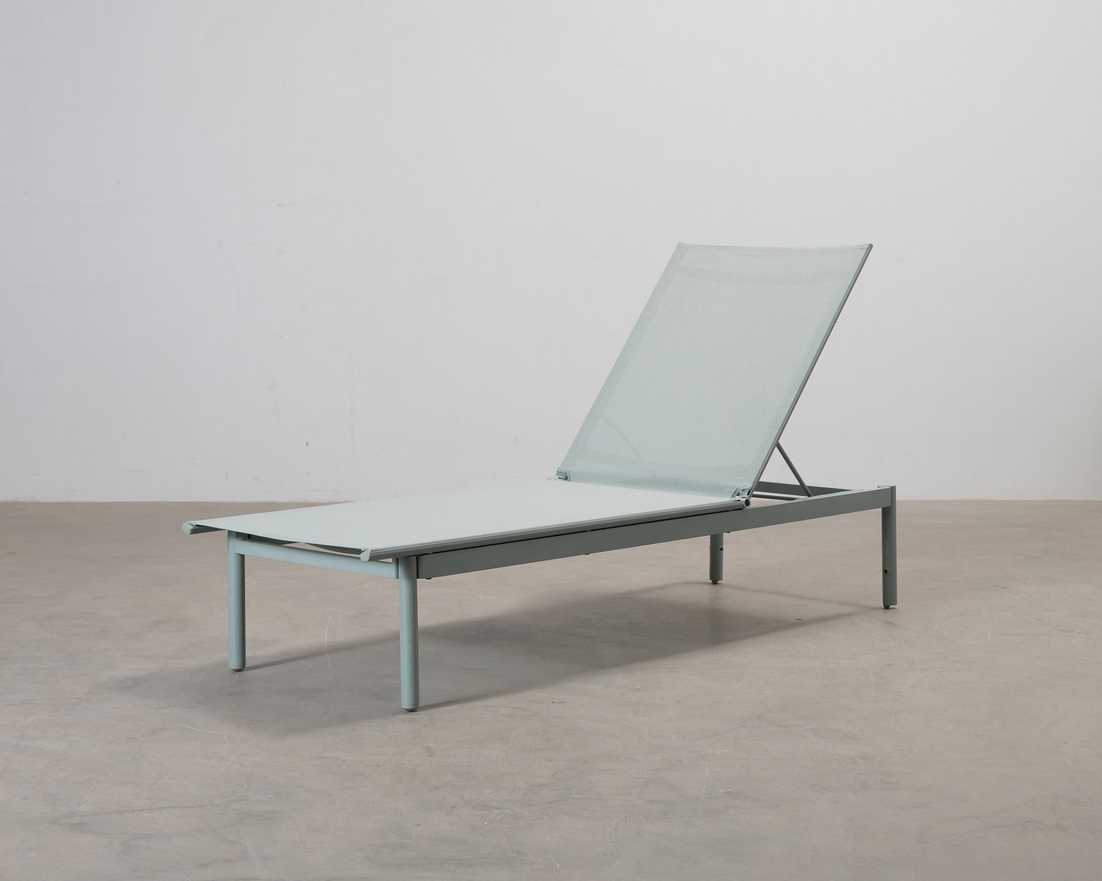 Forms & Objects Aiden är en stilren solstol som kan användas både i liggande och sittande läge. Den minimalistiska designen och den grågröna färgen gör den lätt att kombinera med olika miljöer. Små användningsspår och repor. Helhetsintrycket är bra.