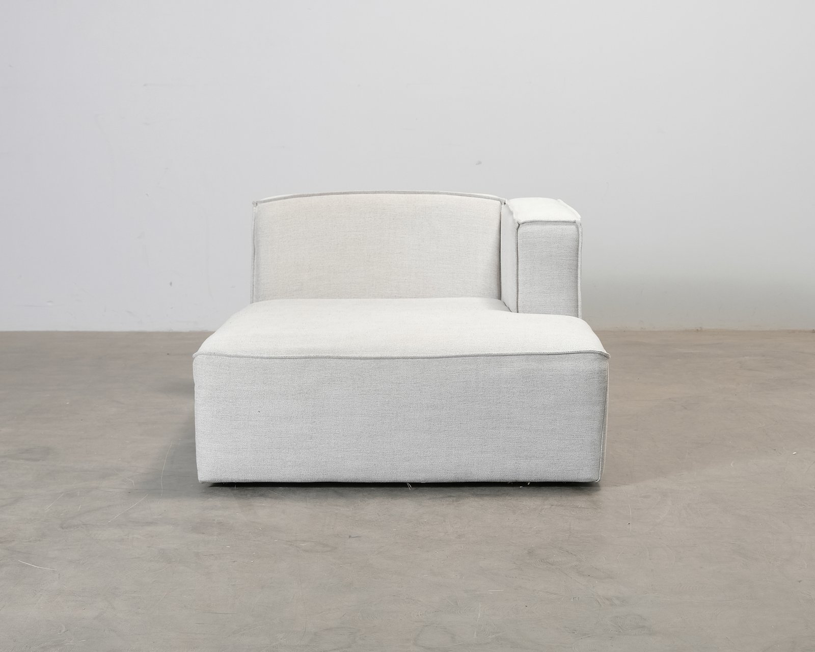 Trendig och mycket bekväm soffmodul med fransk söm i ett slitstarkt tyg. Den robusta designen med dolda ben ger komfort i stilen samtidigt som sömmarna stramar åt och ger soffan en modern känsla. Modulsoffan är stabil och består av material som ger bra komfort och behåller formen väl. Den är konstruerad på en ram av massiv furu och plywood, vilket ger en stadig och hållbar kvalitet. Ryggstödet är trasigt och klädseln har ludd. Det finns en grop där ryggstödet möter sittdelen.