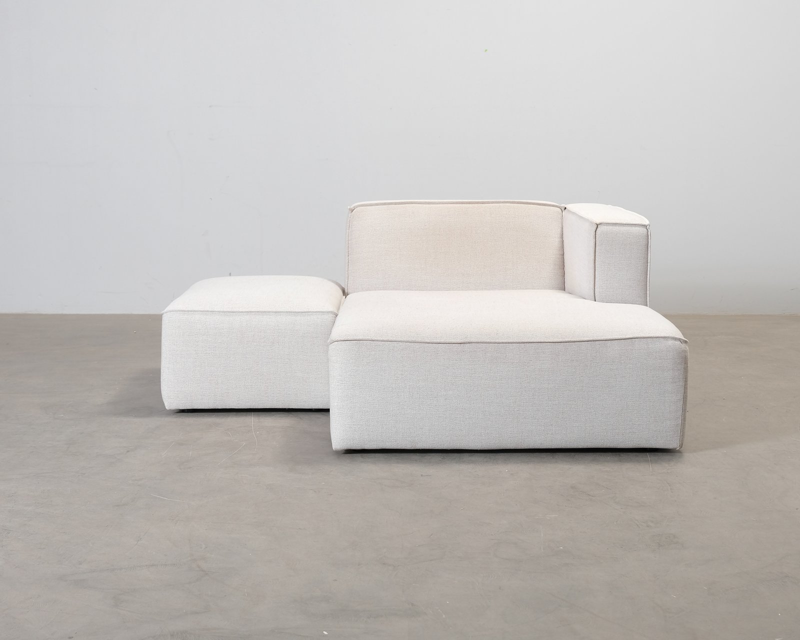 Trendig och mycket bekväm soffmodul med fransk söm i ett slitstarkt tyg. Den robusta designen med dolda ben ger komfort i stilen samtidigt som sömmarna stramar åt och ger soffan en modern känsla. Modulsoffan är stabil och består av material som ger bra komfort och behåller formen väl. Den är konstruerad på en ram av massiv furu och plywood, vilket ger en stadig och hållbar kvalitet. Normalt slitage och lätt noppor på klädseln. Helhetsintrycket är bra.
