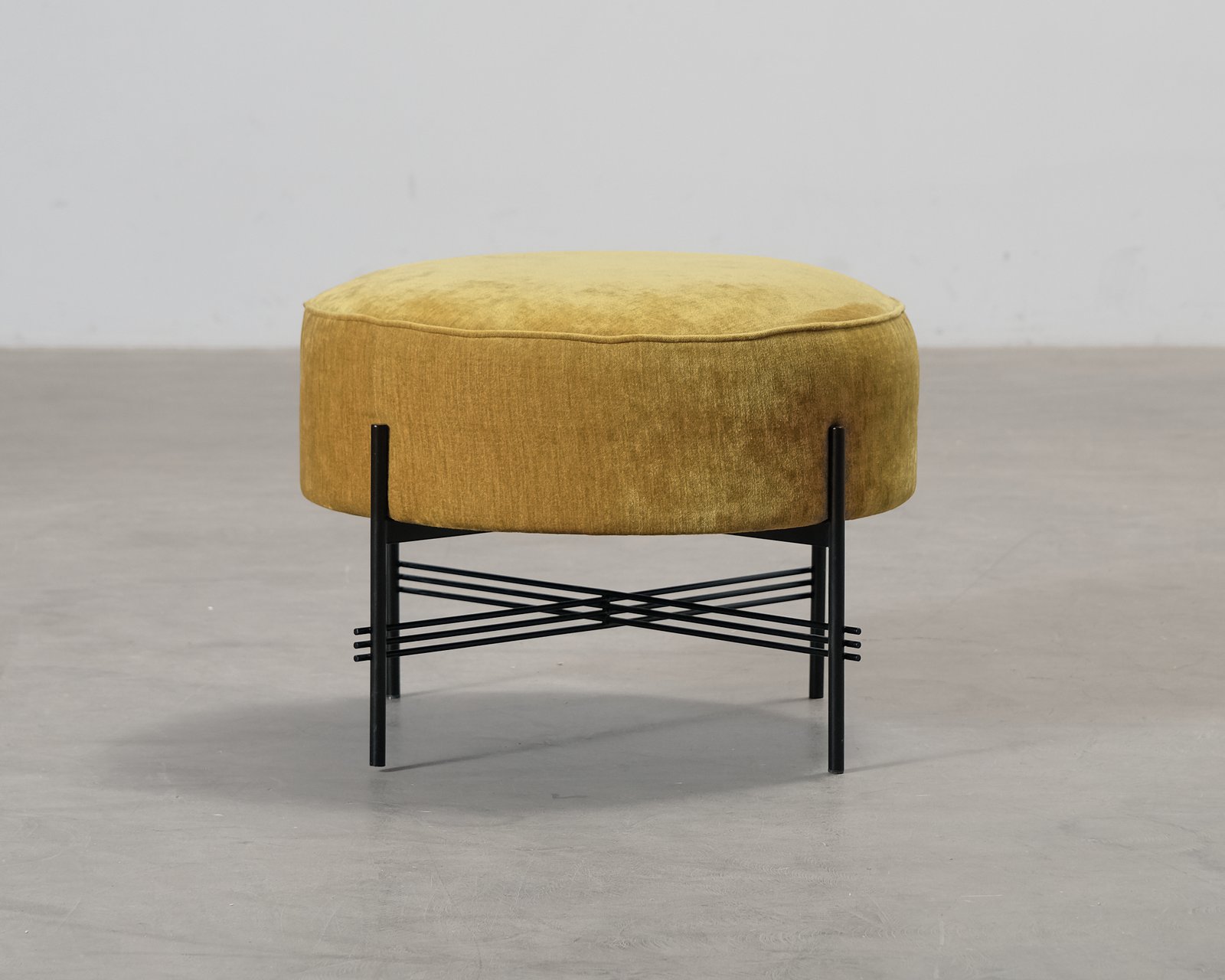 TS-pouf från Gubi speglar kollektionens estetik, med tunna metallben och dekorativa detaljer. Pallen är ursprungligen designad för att matcha soffborden på restaurang The Standard i Köpenhamn. TS-pouf är designad av GamFratesi. Små spår användning. Helhetsintrycket är fint.