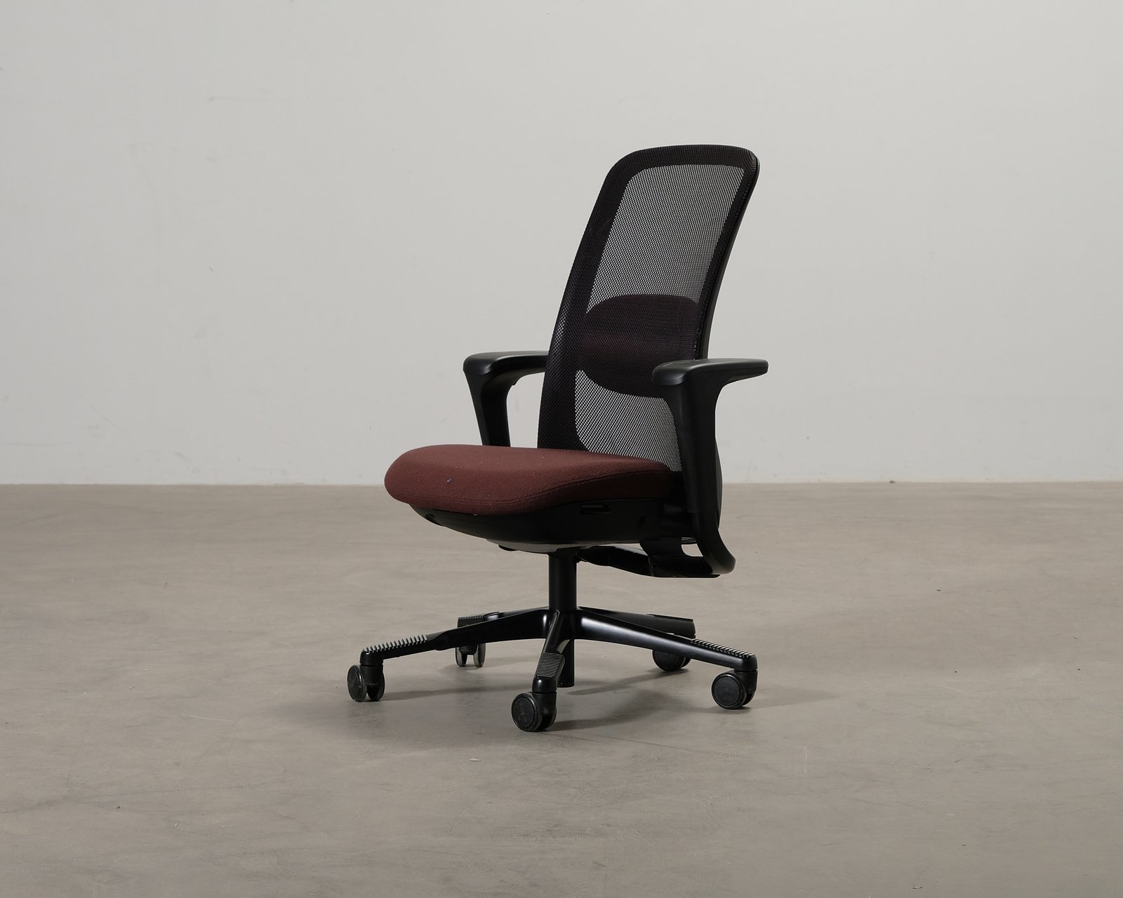 Håg märkets ergonomiska SoFi 7500 arbetsstol. Tygklädsel, justerbar höjd och hjulförsedd. Normalt bruksslitage och repor på armstöden. Helhetsintrycket är bra.
