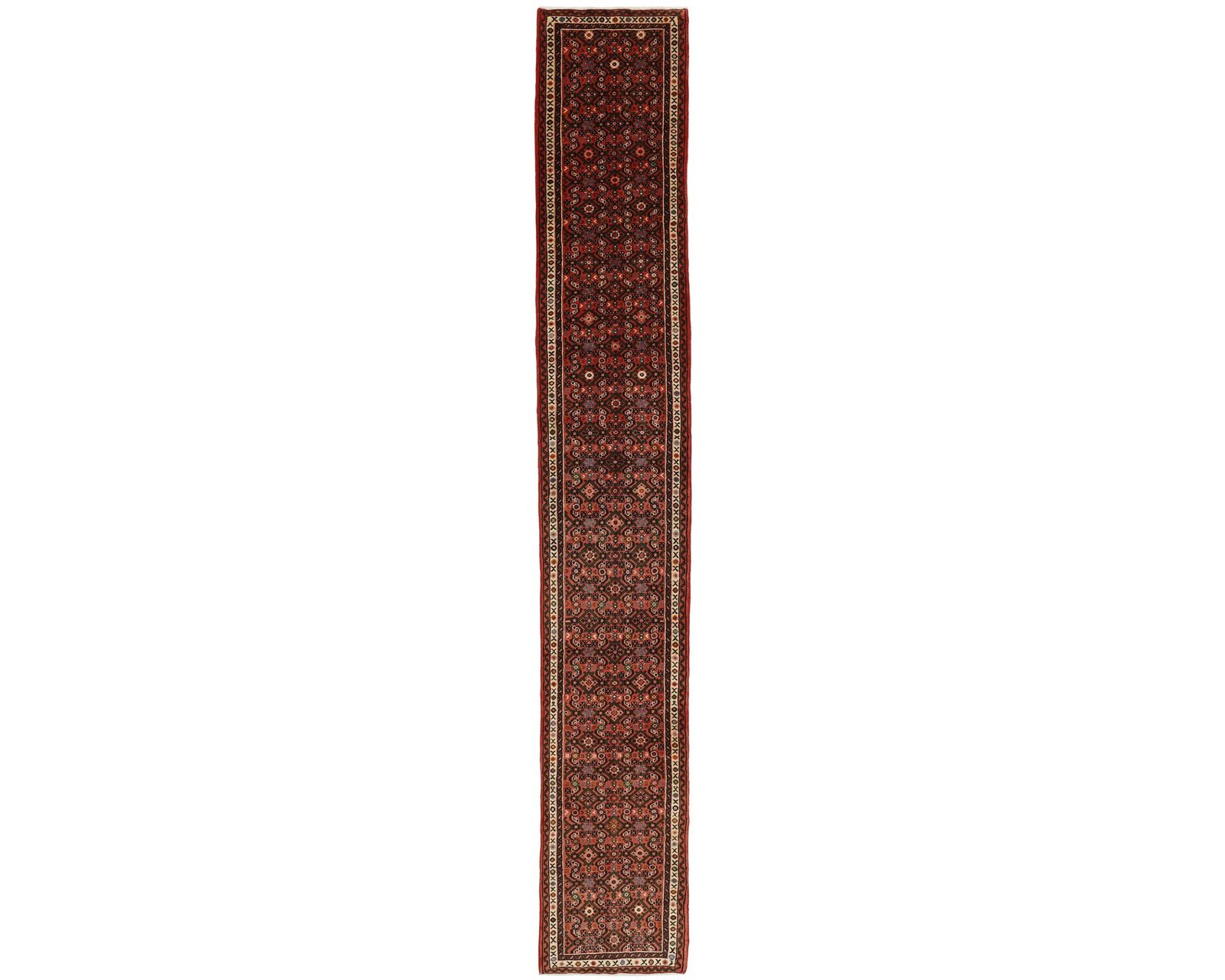 Hosseinabad-mattorna är handknutna ullmattor som är kända för sin robusta konstruktion och sin lämplighet för vardagsbruk. Mönstren är oftast heltäckande och fritt uppbyggda, med ett kraftfullt formspråk. Färgskalan domineras av röda och bruna toner. Mattorna är knutna med ghiordesknut i en täthet på 150 000–250 000 knutar per kvadratmeter. Oanvänd.