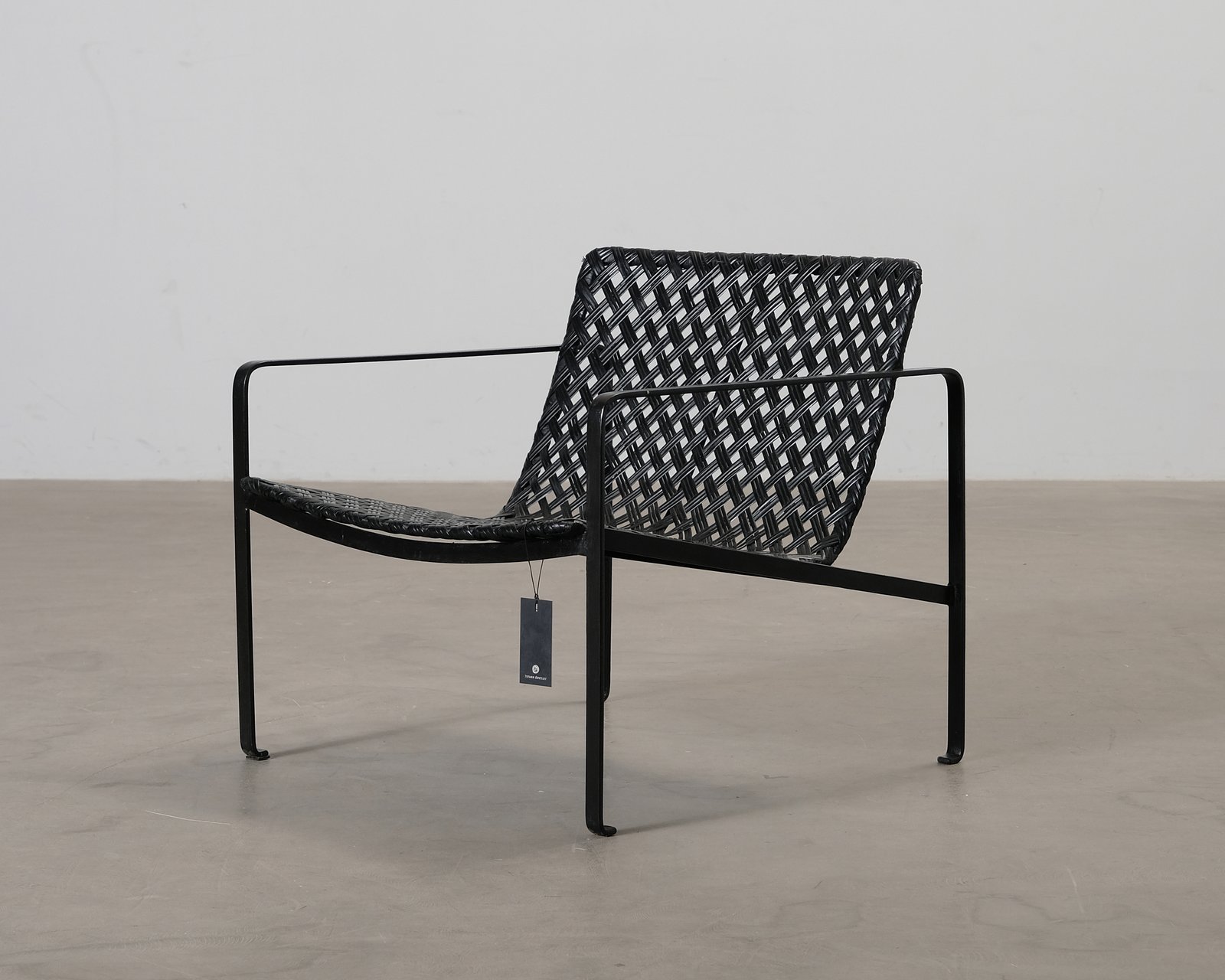 Fåtöljen Habra från House Doctor består av en metallram och en sits i rotting. Den minimalistiska designen gör att den passar in i många olika inredningsstilar och kan användas både inomhus och utomhus. Det finns små repor på benen och gummitassarna har lossnat från två av benen. Helhetsintrycket är fint.