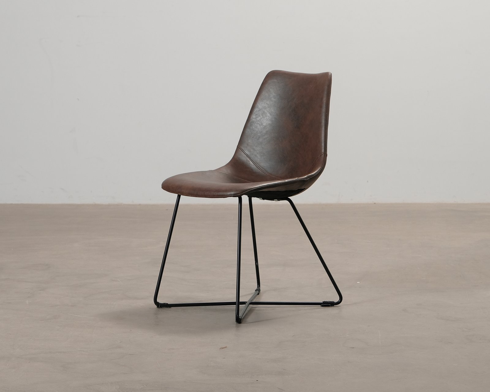 Viktor är en stilren matstol som ger en varm och inbjudande känsla till matsalen. Stolen är helklädd i brun PU-läder, vilket gör den både lättskött och bekväm. Den tidlösa designen passar i många olika typer av inredningar. Stolarna har mycket normalt slitage, klädseln är fläckig och sliten. Stolarna saknar några bultar från botten, saknade bultar har ersatts.