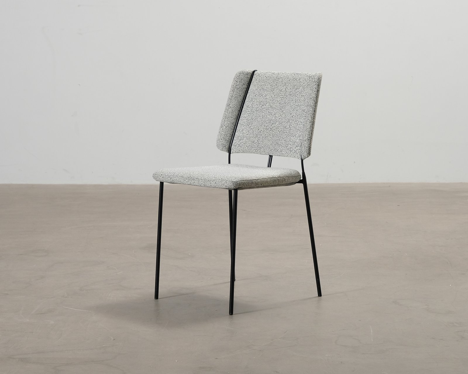 Frankie 08 är en minimalistisk stol tillverkad av det svenska märket Johanson Design. Den synliga benställningen gör stolen unik och stilren. Sits i ljusgrå tygklädsel. Små spår av använding på ytorna. Helhetsintrycket mycket gott.