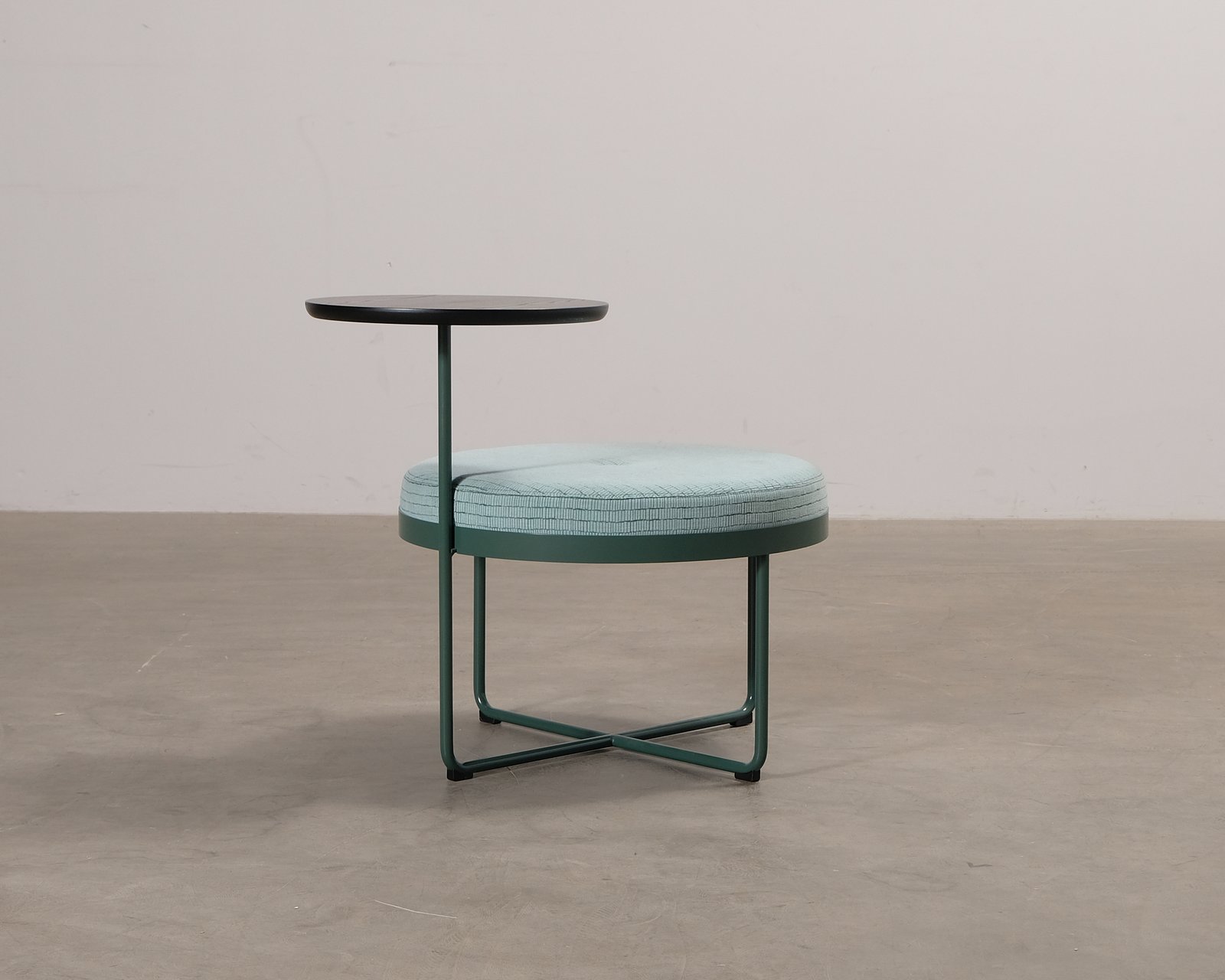 Johanson Design erbjuder skandinavisk design för alla inredningsbehov. Shima är en rund sittmöbel, lämplig till exempel som lobbymöbel. Sittmöbeln, som är perfekt för kontoret, har en metallram och är klädd i tyg. Små spår av användning.