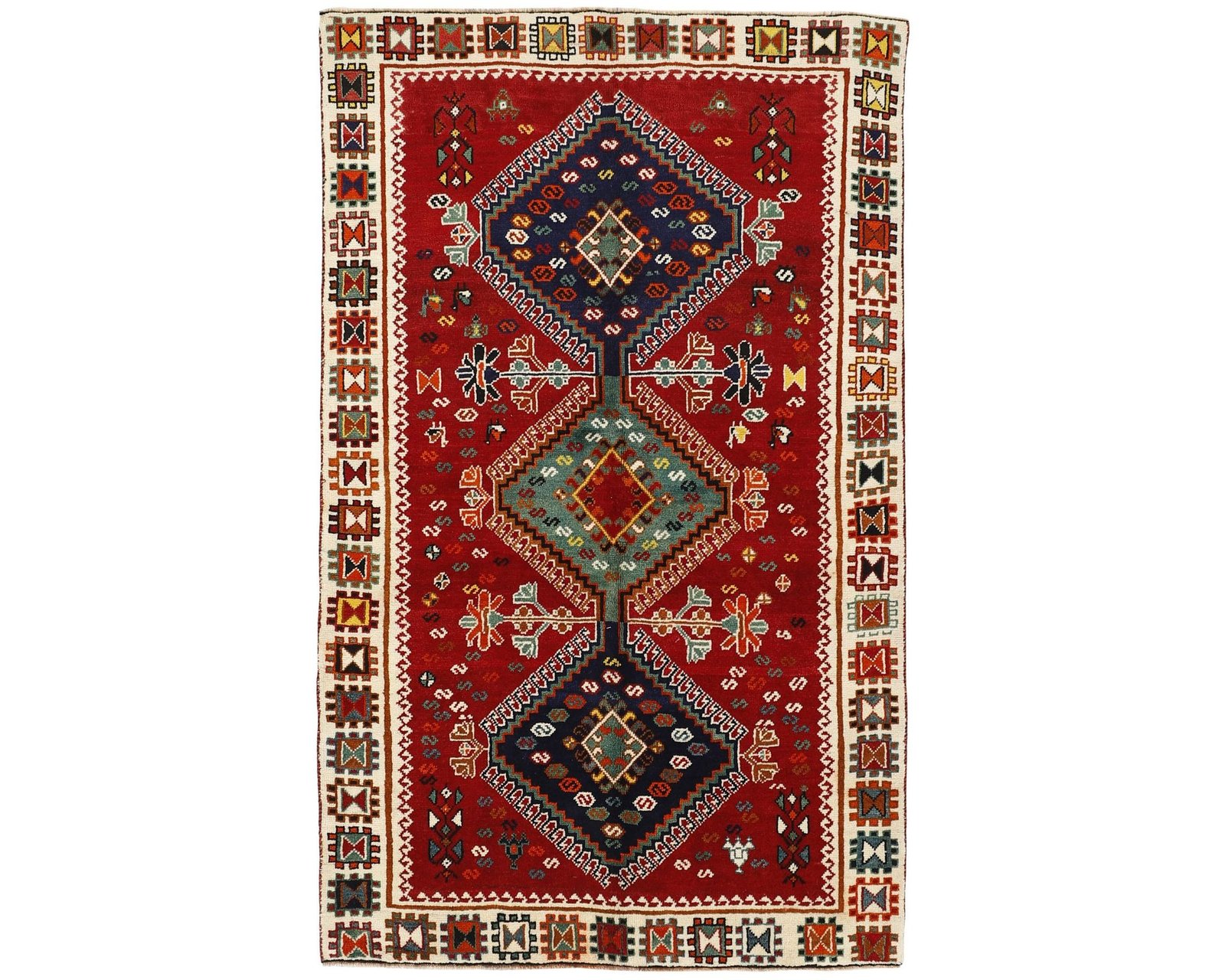 Kashghai-mattorna är handknutna ullmattor som kännetecknas av djupa färger, särskilt rika röda toner, och en tät konstruktion. Det geometriska mönstret är ofta uppbyggt med medaljonger längs en central axel eller placerade i mitten och hörnen, medan den övriga ytan fylls av mindre geometriska motiv. Traditionella mönster som Harshang och inslag inspirerade av Persepolis är vanliga och ger mattorna ett mycket detaljrikt uttryck. Knuttätheten varierar mellan 150 000 och 250 000 knutar per kvadratmeter. Oanvänd.