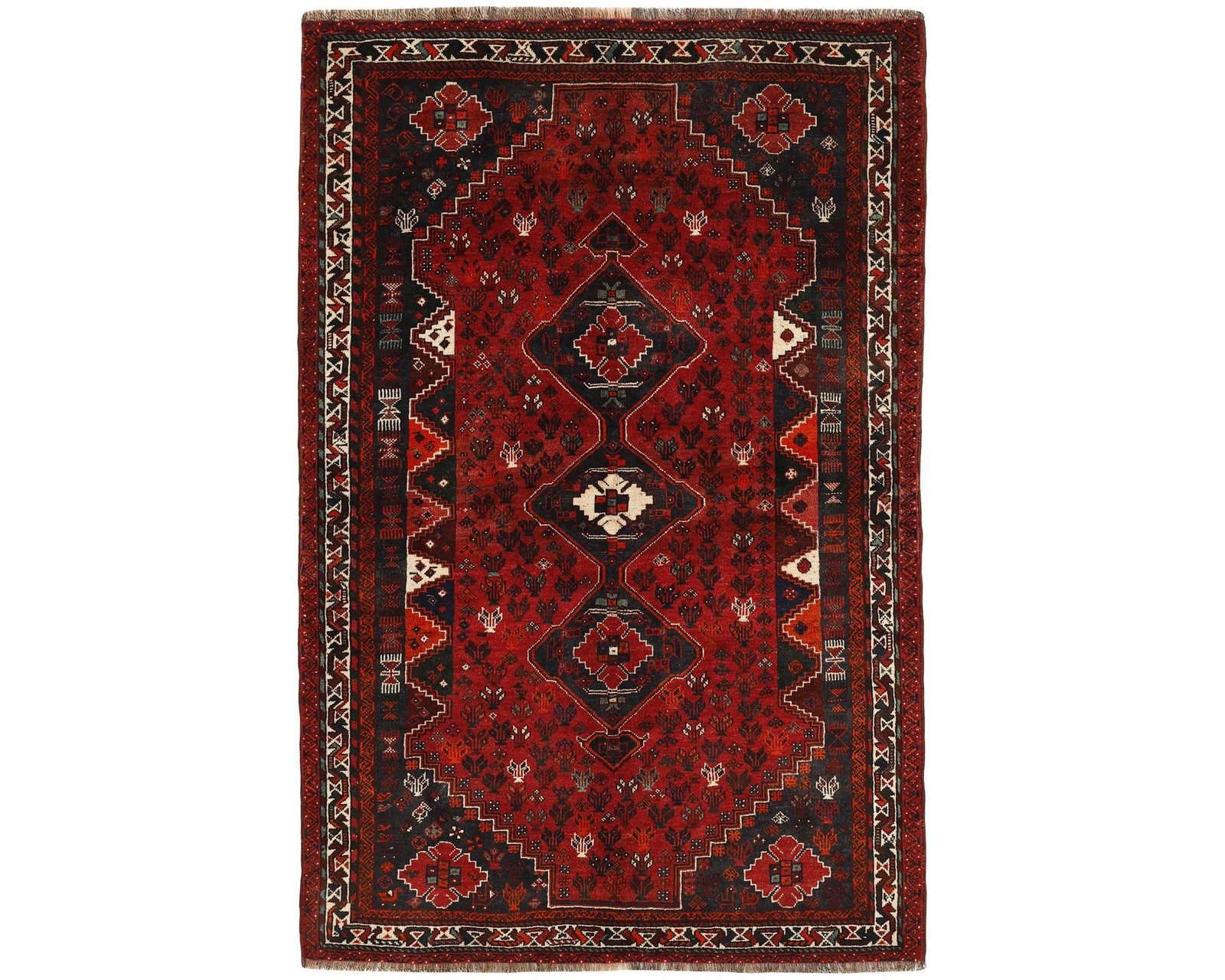 Kashghai-mattorna är handknutna ullmattor som kännetecknas av djupa färger, särskilt rika röda toner, och en tät konstruktion. Det geometriska mönstret är ofta uppbyggt med medaljonger längs en central axel eller placerade i mitten och hörnen, medan den övriga ytan fylls av mindre geometriska motiv. Traditionella mönster som Harshang och inslag inspirerade av Persepolis är vanliga och ger mattorna ett mycket detaljrikt uttryck. Knuttätheten varierar mellan 150 000 och 250 000 knutar per kvadratmeter. Oanvänd.